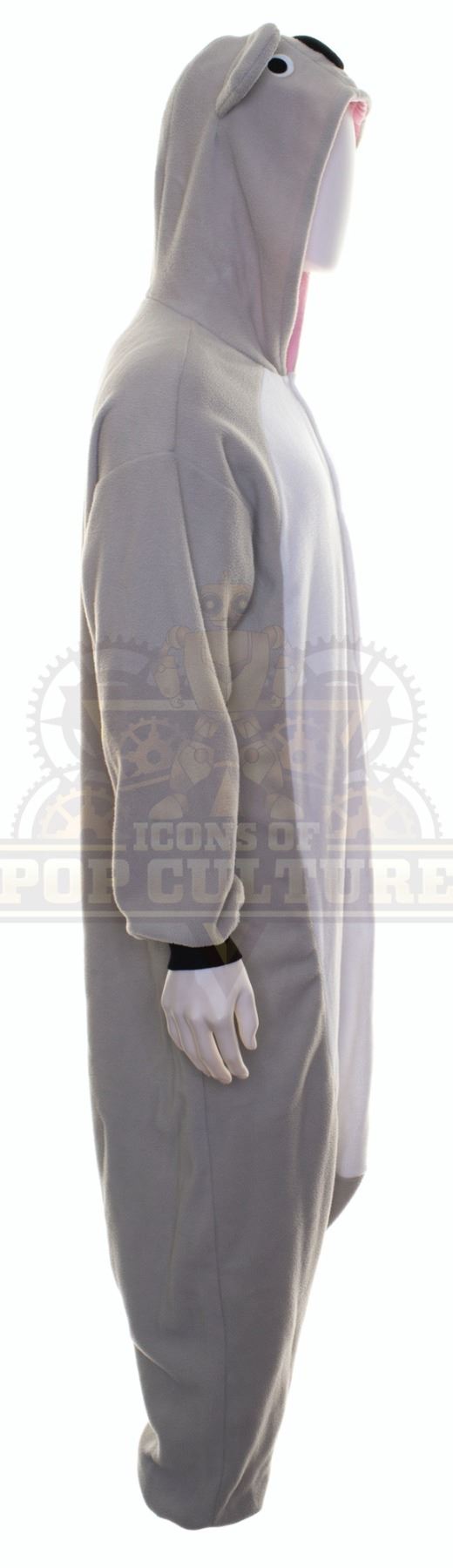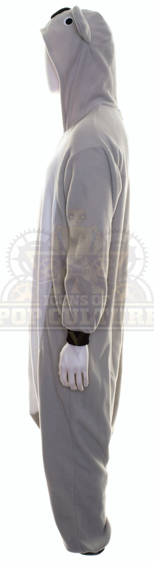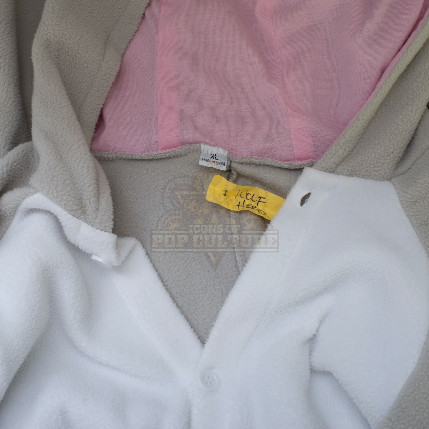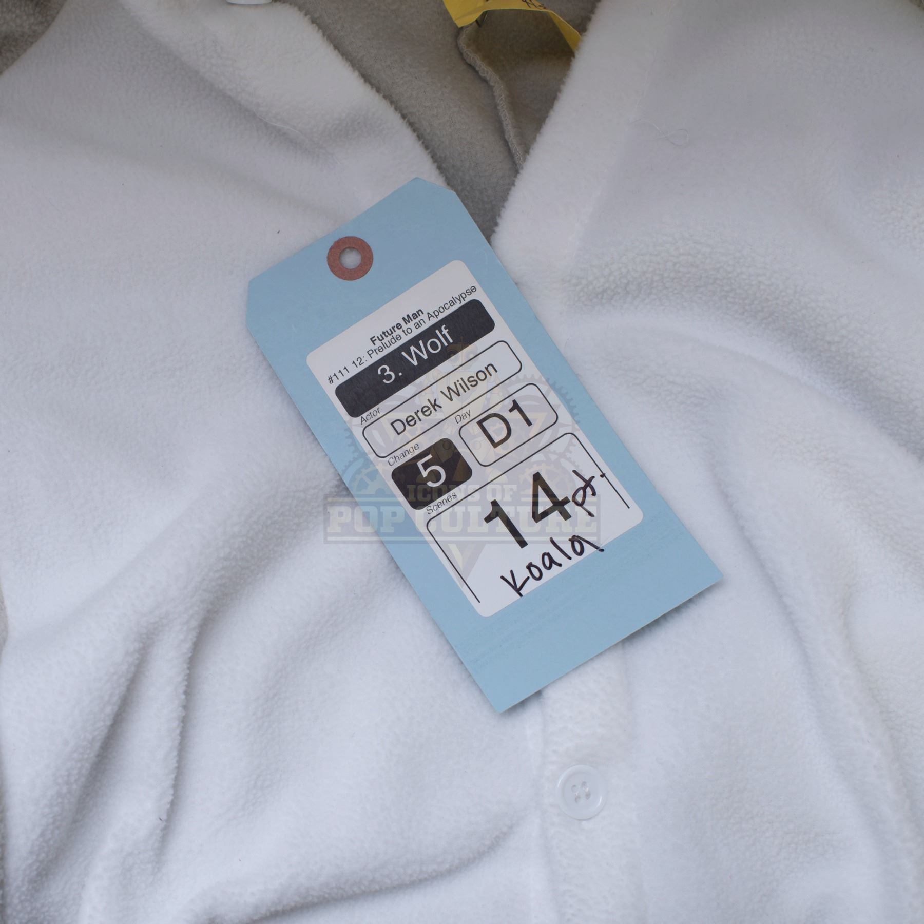 This outfit was acquired by the production for use by Derek Wilson as “Wolf” in the season one episode titled “Prelude to an Apocalypse”. The outfit consists of a button front onesie with white belly and Koala bear hood. Included with the outfit is a production used costume tag that details the entire outfit, change and scene numbers used.