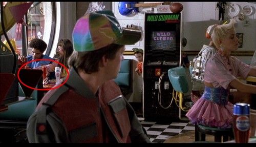 (Universal, 1989) This future Slice bottle was custom-made for the production for use by various actors. Made of plastic with built in flip up straw and detailed with the future Slice logo.