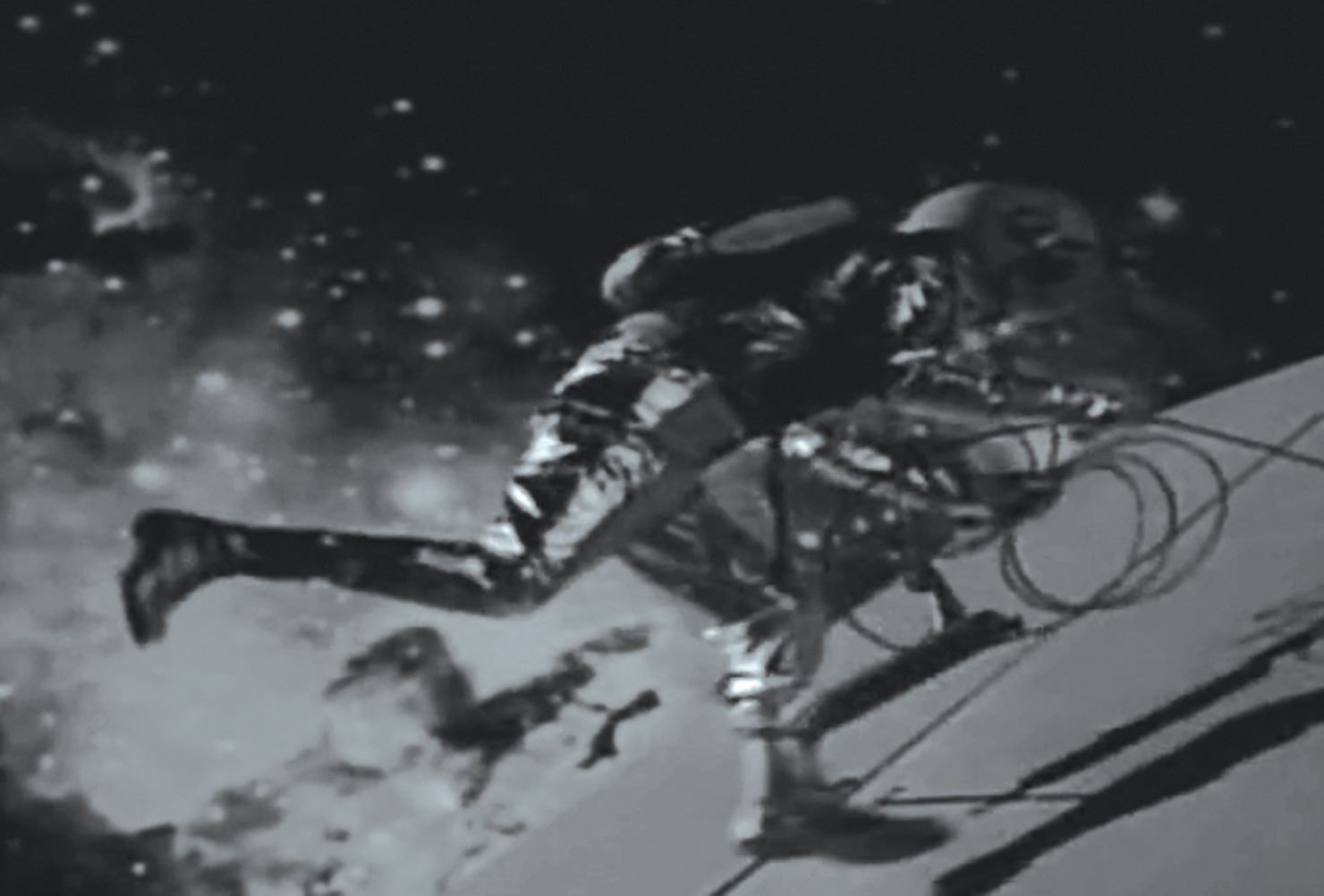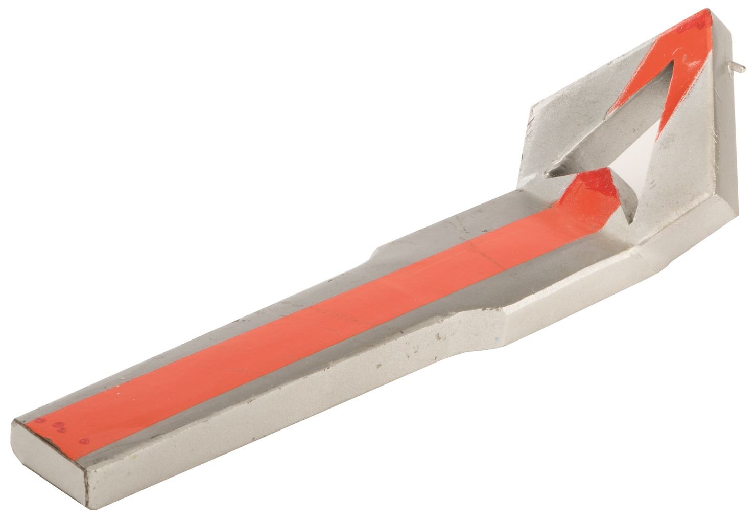 37. Futuristic metal wrench from Lost in Space and Voyage to the Bottom of the Sea. (TCF TV, 1964-1968) Vintage original tooled aluminum futuristic wrench measuring 10 x 3 x .5 in. Created in the famed prop department of 20th Century-Fox studios. This unique wrench features a triangular sprocket for an otherworldly lug nut and a painted orange racing stripe (orange being Allen's favorite color). It was used in Voyage to the Bottom of the Sea and also featured in Lost in Space, visible used by "John Robinson" (John Williams) in the pilot episode during his space walk and other episodes. Exhibiting production use and age. In vintage fine condition. $1,000 - $1,500