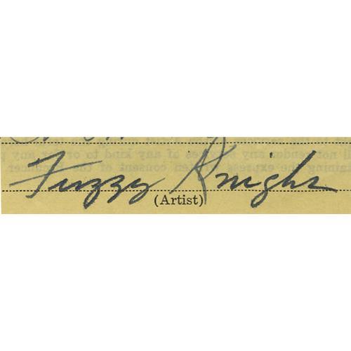 <B>Fuzzy Knight Signed Contract.</B></I> Freelance contract with Samuel Goldwyn Inc., dated June 13, 1938, signed by the perennial B-grade Western sidekick actor in black fountain pen. In Excellent condition with a few fold creases. <I>With COA from PSA/DNA.</B></I>