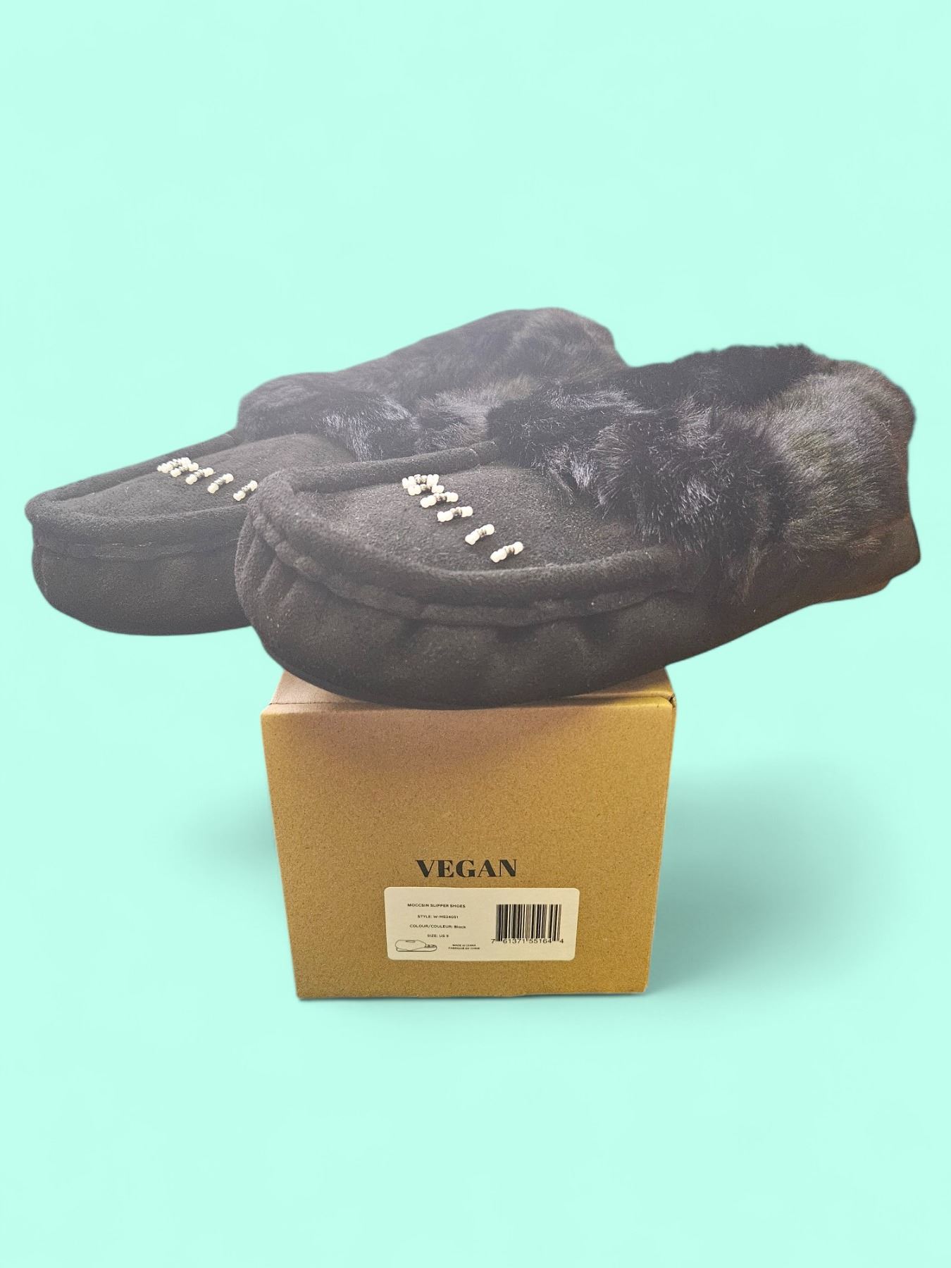 Moccasin style black slippers. size 9