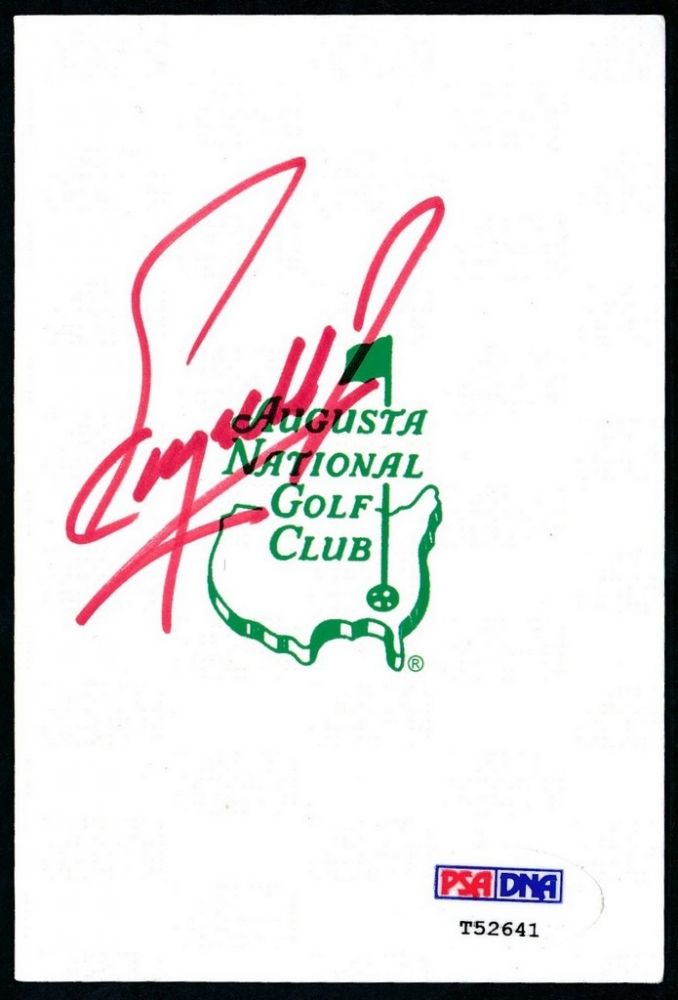 Augusta National Golf Club Masters Scorecard. Hand-signed in red felt-tip pen. The autograph includes an official PSA/DNA hologram and matching COA for authenticity purposes.