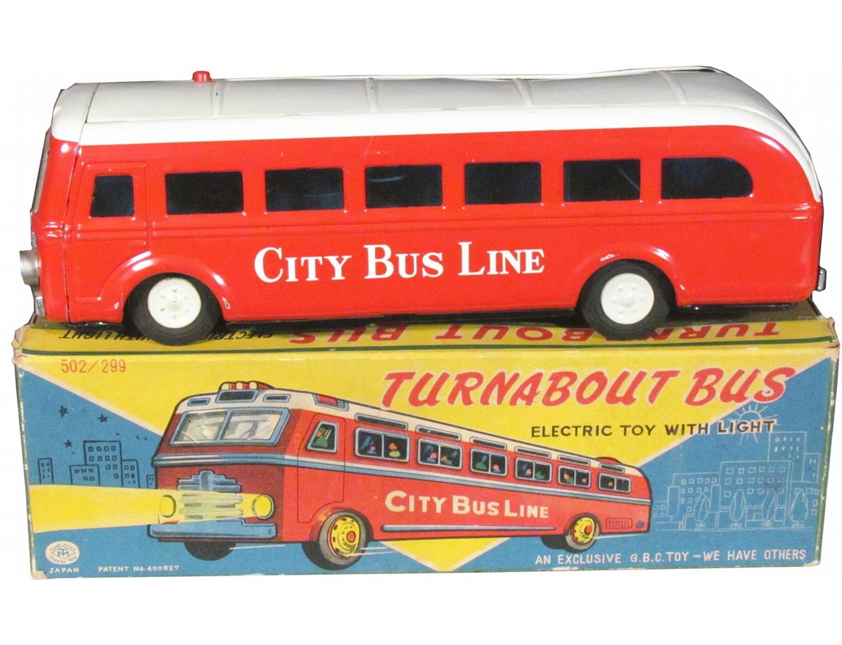 1950's G.B.C. Toys Japanese Made City Line Tin Toy Bus. Excellent condition, comes in original box. 14 inches long.