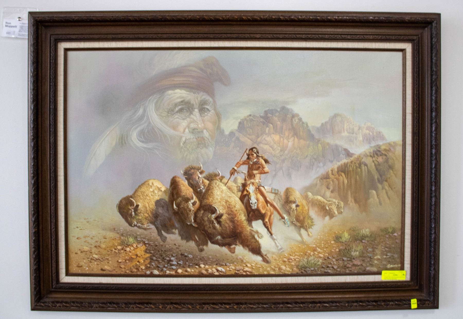 G BOCTAR INDIGENOUS PAINTING ON CANVAS FRAMED