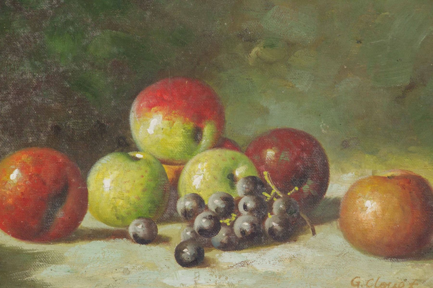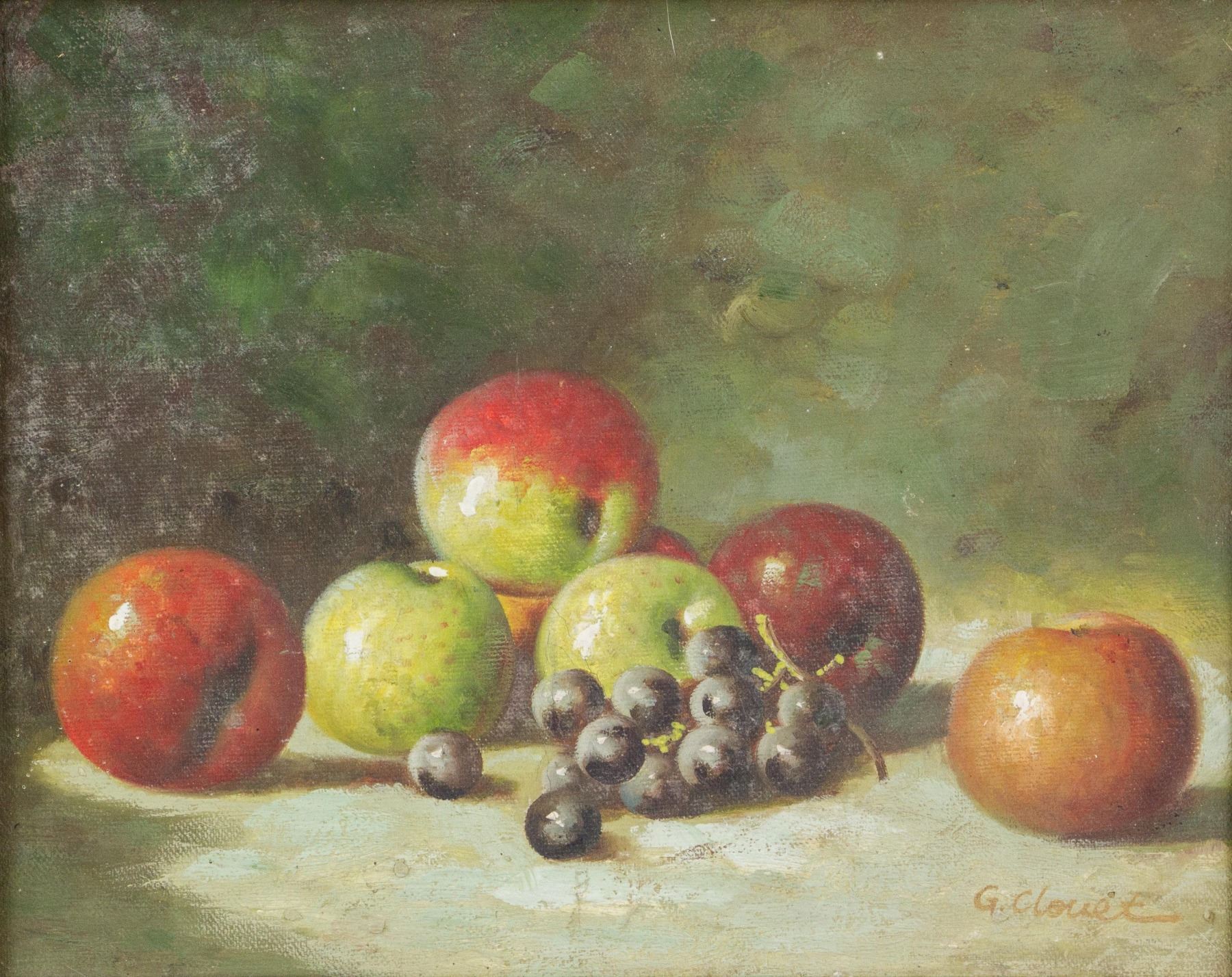 Still life painting of fruits; oil on canvas; framed; signed and attr. G. Clouet, French artist; 8 x 10 in.