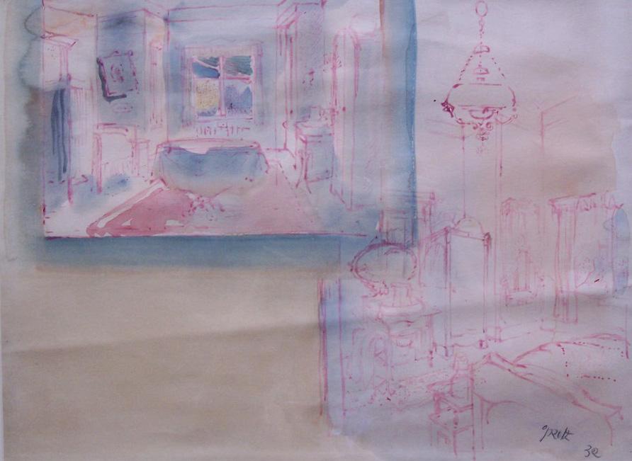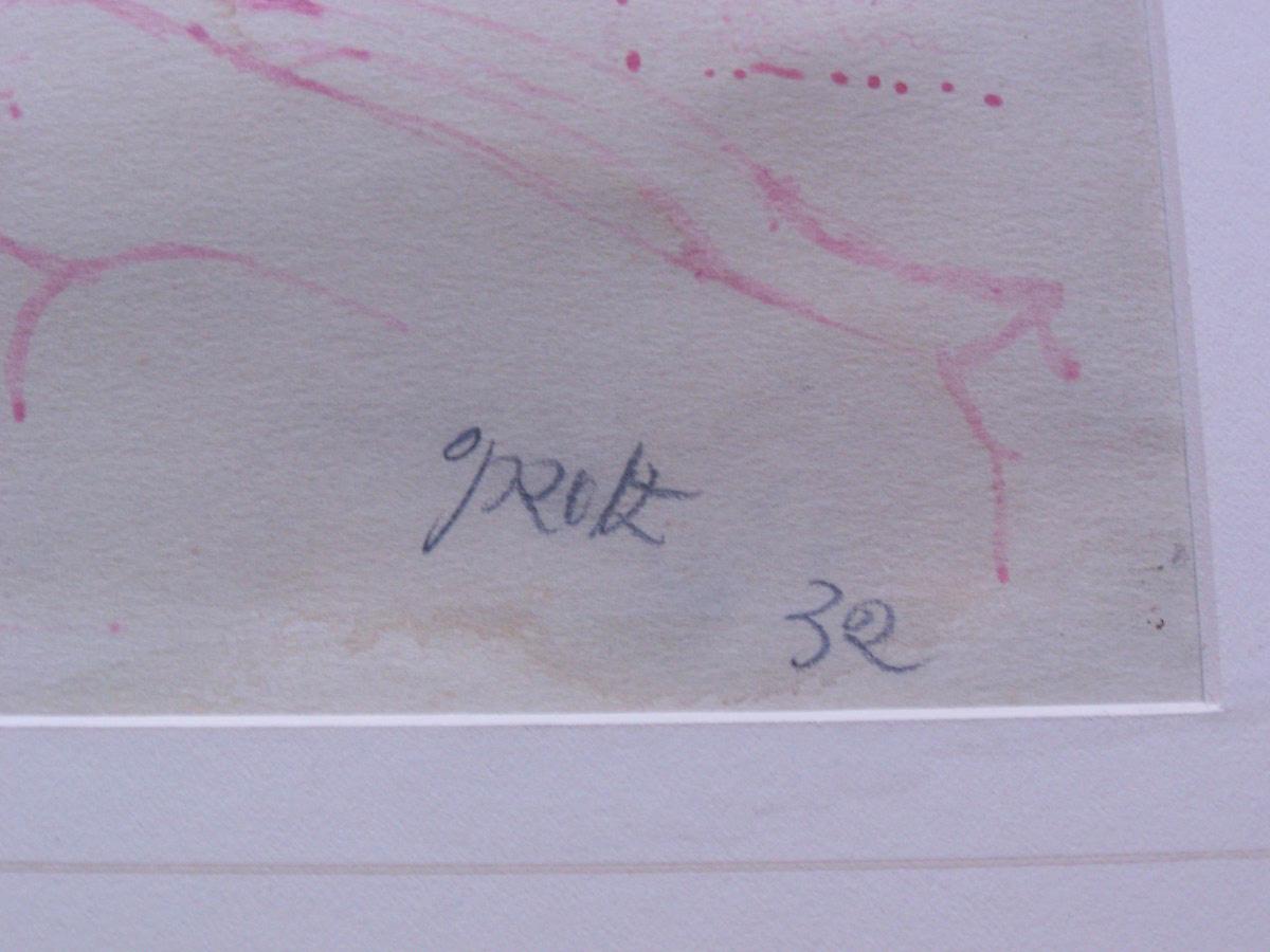 Additional Information: The painting is hand signed by the artist "Grosz" in pencil at the lower right corner, and hand dated in pencil "32" (1932) underneath the signature.