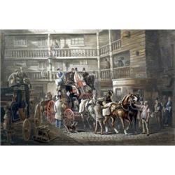 G. Hunt, after C. C. Henderson, Fores's Coaching Recollections, Changing Horses, Alright, Pulling Up To Un-skid, Waking Up, The Olden Time, plts 1-V, aquatints, in colours, published 1846 by Fores, Sporting & Fine Print Repository, 18in x 26.75in, framed (foxing, some discoloration and fading) Provenance: Casewick Hall, Lincolnshire