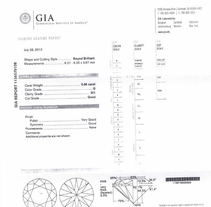 .96ct 6.21-6.25x3.87mm Round Brilliant G color SI1 clarity very good, ready for any setting includes GIA Certificate