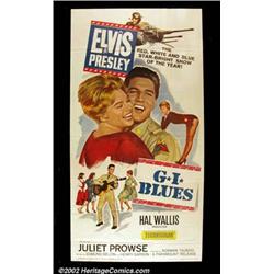G.I. Blues (Paramount, 1960). Three Sheet (41"X81") Fresh from his active duty tour of Europe, Elvis Presley is featured in his army uniform, singin' and or swinging' with the chicks! Paramount rushed this film into production to capitalize on Elvis' return, hoping to satisfy the fans that had been waiting for him for two years! Fine+. Important notice: We expect to be auctioning lots at the rate of 200-250 per hour. Sometimes eBay Premier live bid software cannot keep up with that pace, so we strongly recommend that you place a realistic proxy bid now as insurance to avoid disappointment. Also please note that all Heritage/CAA lots purchased through eBay Premier carry a 20% Buyer's Premium.