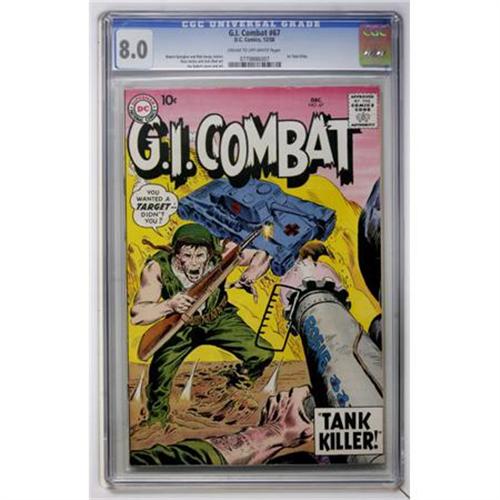 <B>G.I. Combat #67 (DC, 1958) CGC VF 8.0 Cream to off-white pages.</B></I> First appearance of the Tank Killer. Joe Kubert cover and art. Ross Andru and Jack Abel art. Overstreet 2007 VF 8.0 value = $167. CGC census 6/07: 1 in 8.0, none higher. <I>From the Keith Marlow Collection.</B></I><BR><BR><b>Shipping:</b> Comics - Slabbed (certified) (<a target="_blank" href="http://www.heritageauctions.com/common/shipping.php">view shipping information</a>)