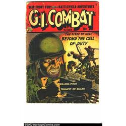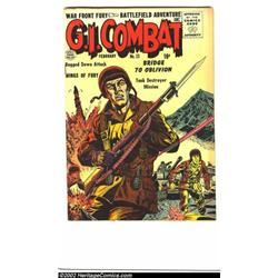 G.I. Combat Lot (Quality & DC, 1952). This lot consists of 118 issues from the G.I. Combat run, 17 of which were published by Quality, and 111 of which were published by DC. Included in this lot is a complete copy of issue #1, an incredibly difficult book to find--one that always sells for multiples of graded Guide value. The books are as follows: #1 GD-, #3 GD, #6 GD+, #12 VG-, #16 FR, #20 VG-, #21 VG, #23 GD, #26 FN-, #27 GD/VG, #29 GD, #31 GD/VG, #33 FN-, #37 VG-, #40 GD-, #42 GD-, #43 FN, #45 VG, #46 GD, #48 FR, #50 VG, #51 FR/GD, #55 VG, #56 VG, #58 FR/GD, #59 VG, #61 GD/VG, #62 VG+, #63 VG+, #64 FR, #65 GD-, #67 VG+, #69 VG+, #70 GD+, #71 GD+, #73 VG+, #74 VG+, #75 GD, #76 FR, #77 VG, #78 FR/GD, #80 VG, #81 FR, #82 GD+, #83 GD, #86 GD+, #87 FR-, #88 GD/VG, #90 GD, #91 GD/VG, #92 GD, #93 GD, #94 GD, #95 GD-, #96 FR, #97 VG/FN, #98 FR, #99 GD, #100 FR/GD, #101 VG+, #102 VG+, #103 GD, #104 GD/VG, #105 VG-, #106 VG-, #107 FR/GD, #108 VG, #109 VG, #110 GD/VG, #111 GD+, #112 VG+, #113 VG, #114 VG+, #115 VG, #116 GD, #117 VG/FN, #118 GD, #119 VG, #120 VG+, #121 VG, #122 VG+, #123 FN+, #124 GD-, #125 GD, #126 VG, #127 VG+, #128 VG+, #129 GD+, #130 VG+, #131 VG/FN, #132 VG+, #133 VG, #134 VG, #135 GD+, #136 VG, #137 VG/FN, #138 VG-, #139 GD, #140 VG, #141 VG, #142 FN, #143 VG, #144 VG, #145 VG-, #146 VG, #147 VG/FN, #148 VG/FN, #149 VG-, #150 VG-, #151 VG+, #152 VG/FN, #153 VG+, #154 FN/VF, #155 FN/VF, #156 VG, #157 VG, #159 FN+, #160 VG. Overstreet 2002 total value for lot = $1,800. 118 Comic Books Important notice: We expect to be auctioning lots at the rate of 200-250 per hour. Sometimes eBay Premier live bid software cannot keep up with that pace, so we strongly recommend that you place a realistic proxy bid now as insurance to avoid disappointment. Also please note that all Heritage/CAA lots purchased through eBay Premier carry a 20% Buyer's Premium. Please make sure you read the Terms and Conditions.