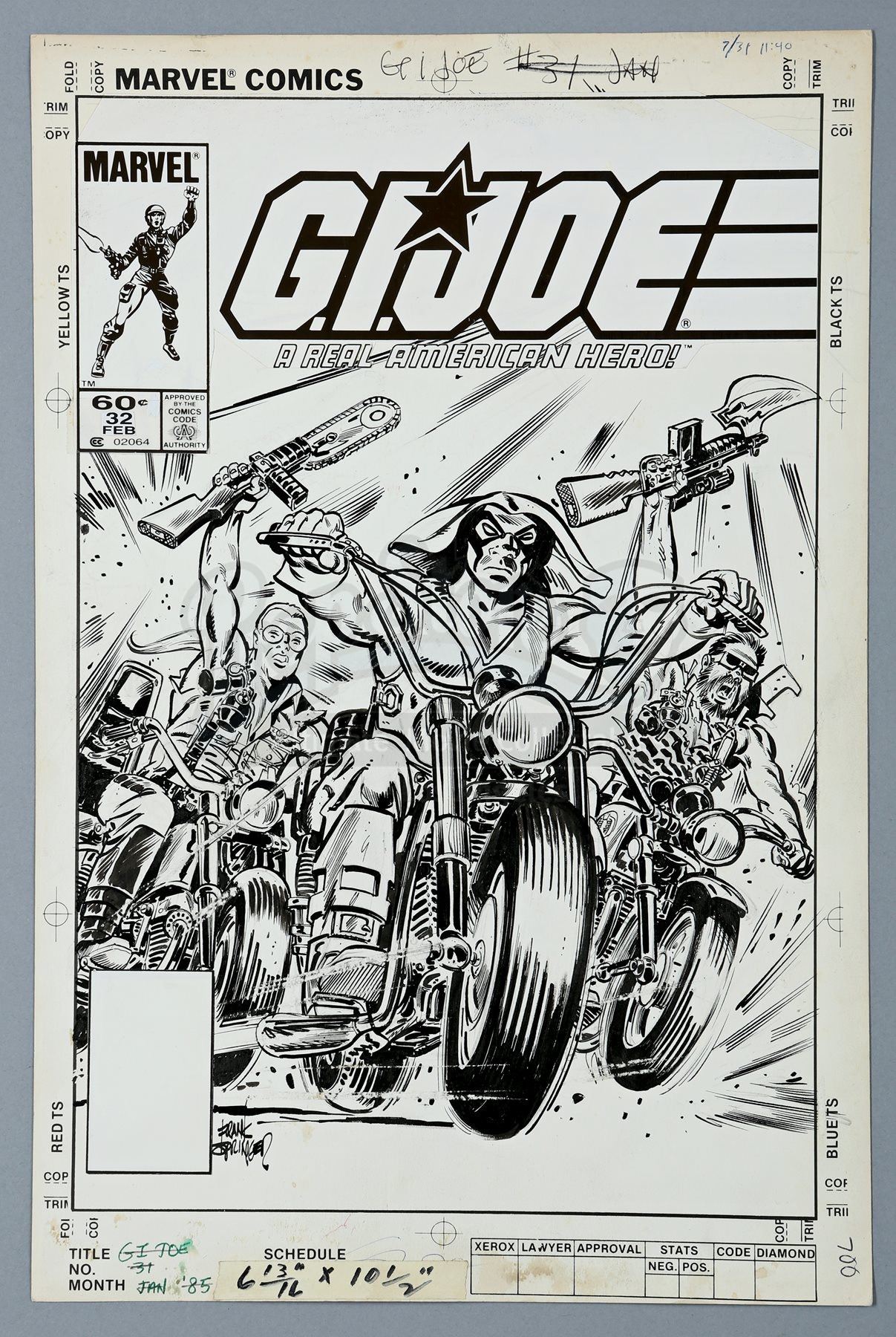 Included with the lot is a reference copy of G.I. Joe: A Real American Hero #32, the comic book in which this art was originally published. The artwork shows scratches to the board with minor tanning, but remains in fine condition. Dimensions: 43 cm x 28 cm (17” x 11”)