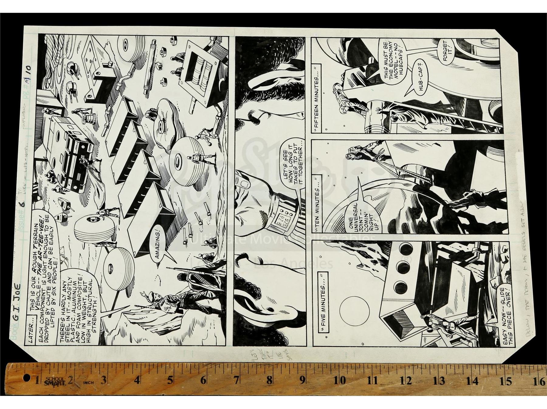 Herb Trimpe (Penciler), Chic Stone (Inker)Marvel Comics, December 1982Introduction of the Rough Terrain Vehicle (R.T.V.) with appearances by Stalker, Scarlett, and Grand Slam. Features handwritten notations.Condition:Very good; some stains from age and handling.Dimensions: 16" x 11" x 1" (40cm x 27.5cm x 2.5cm)$1,750-2,250