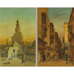 watercolour painting, 2 pieces, signed 1897, "Cairo", 58 x 36 cm
