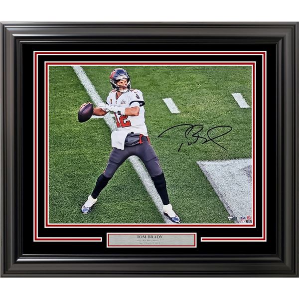 TOM BRADY SIGNED FRAMED TAMPA BAY BUCCANEERS 16X20 PHOTO (FANATICS COA)123 - TOM BRADY SIGNED FRAMED TAMPA BAY BUCCANEERS 16X20 PHOTO (FANATICS COA)