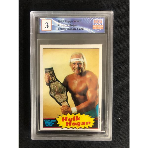 1985 TOPPS WWF NO. 1 HULK HOGAN YELLOW RC (GCG 3)143 - 1985 TOPPS WWF NO. 1 HULK HOGAN YELLOW RC (GCG 3)