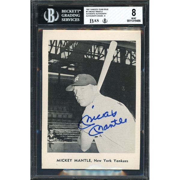 MICKEY MANTLE SIGNED 1961 TEAM ISSUED 5X7 PHOTO (BGS 8 AUTO)144 - MICKEY MANTLE SIGNED 1961 TEAM ISSUED 5X7 PHOTO (BGS 8 AUTO)