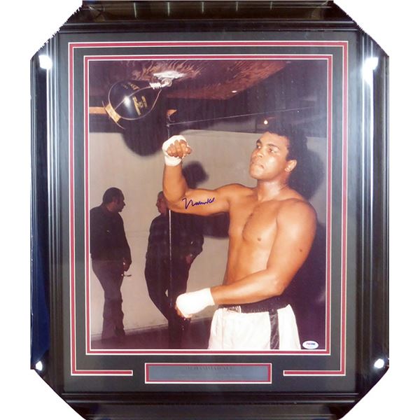 MUHAMMAD ALI SIGNED FRAMED 16X20 PHOTO (PSA/DNA)146 - MUHAMMAD ALI SIGNED FRAMED 16X20 PHOTO (PSA/DNA)