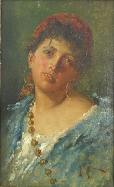 Oil on canvas. Late 19th, early 20th century Italy. Signed lower right. Approx. 16" x 11" unframed, 20" x 15" framed. Relined. Damages to frame