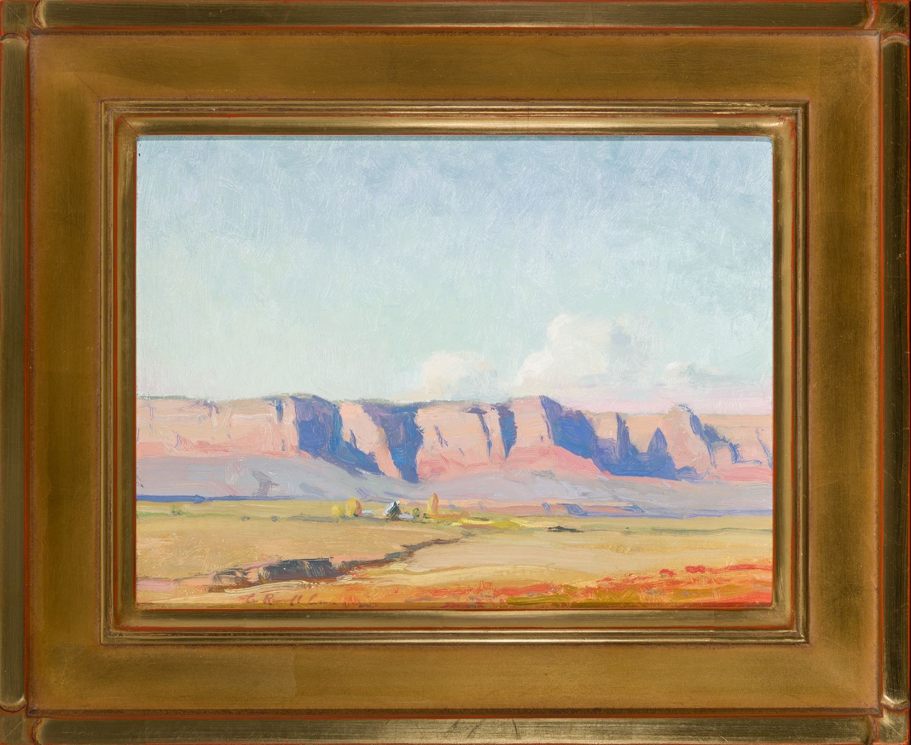 Condition details: This painting is in very good condition. With the unaided eye there are no issues. Closer inspection under ultraviolet light reveals normal fluorescence of artist's pigments, and no signs of restoration. The piece is framed in a carved gold frame. The frame is in very good condition with normal wear. Verso: inscribed in artist's hand: Along the Vermillion Cliffs, G. Russell Case 2006 30AG. Label Mitchell Brown Fine Art, Scottsdale, Arizona.
