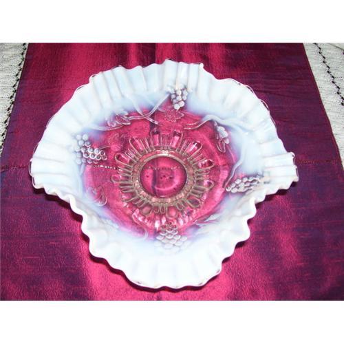 Jefferson White Opalescent and Clear Bowl. Has Vine and Grape Pattern. Very Beautiful Bowl. Made in 1901.