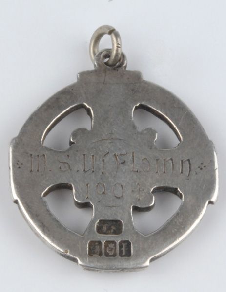 The extremely scarce and historically significant Gaelic Atlethic Association medal awarded to M. S. Uí Floinn. Medal in the same form as All Ireland Championship medals of the period and hallmarked Dublin 1904. Engraved on reverse "M. S. Uí Floinn 1904"The efforts to found a new Gaelic female stick-and-ball game first began in 1903 when draft rules were drawn up by Máire Ní Chinnéide, Seán Ó Ceallaigh, Tadhg Ó Donnchadha and Séamus Ó Braonáin. Through the efforts of Ní Chinnéide and the other members of Keating Branch of the Gaelic League (Craobh an Chéitinnigh) the first ever camogie match in Ireland was played before the public on 17 July 1904 at the Navan Agricultural Society Grounds in County Meath between Craobh an Chéitinnigh and Cúchulainn. The Freeman's Journal noted a few days later that "On Sunday in connection with the Aeridheacht held in the grounds of the Meath Agricultural Society at Navan, the first inter-club Camoguidheacht match took place... both teams were attired in graceful costumes, the Cuchullain colleens wearing light blue with red sashes and the Keating Gaels wearing light blue with yellow ties, the colours of the branch.... The game was fast throughout and it was within five minutes of the call of time before the first score was recorded, a goal for the Keating Club..." Also noting in another article that "[Camogie] is regarded as a novelty, and may be remarked as the first inter-club contest ever played in Ireland...Both teams were composed of colleens and belong to Dublin and the game, which aroused considerable interest, resembles hurling, the ground being marked out something like an ordinary football field. The camog, or hurling stick, however, being much lighter and less dangerous than the ordinary camans"It was 1912 before there would be an inter-county Camogie match and 1932 before the All-Ireland Senior Camogie Championship started. In 2004 the historic match was commemorated at Pairc Tailteann where a plaque was unveiled to mark its centenerary. The GAA Museum hold photographs of both teams which almost certainly includes the recipient of this medal. An interesting and attributable piece of Ireland's sporting past.