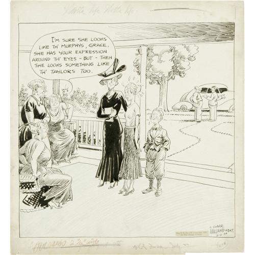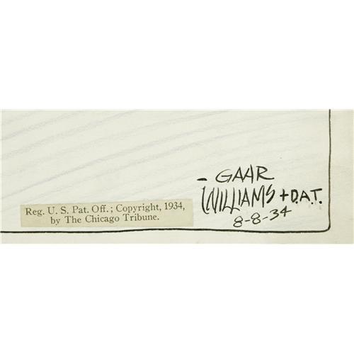 <B>GAAR WILLIAMS (American 1880-1935)</B></I><BR>Cartoon Illustration<BR><I>Wotta Life Wotta Life,</B></I> August 8, 1934<BR>Ink on paper <BR>13.5 x 13.5in.<BR>Signed lower right: <I>Gaar Williams</B></I><BR>