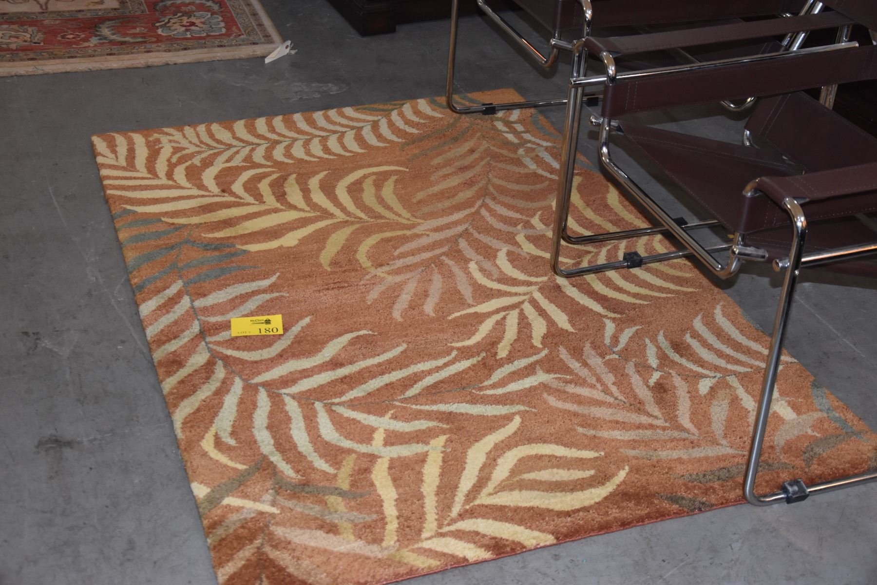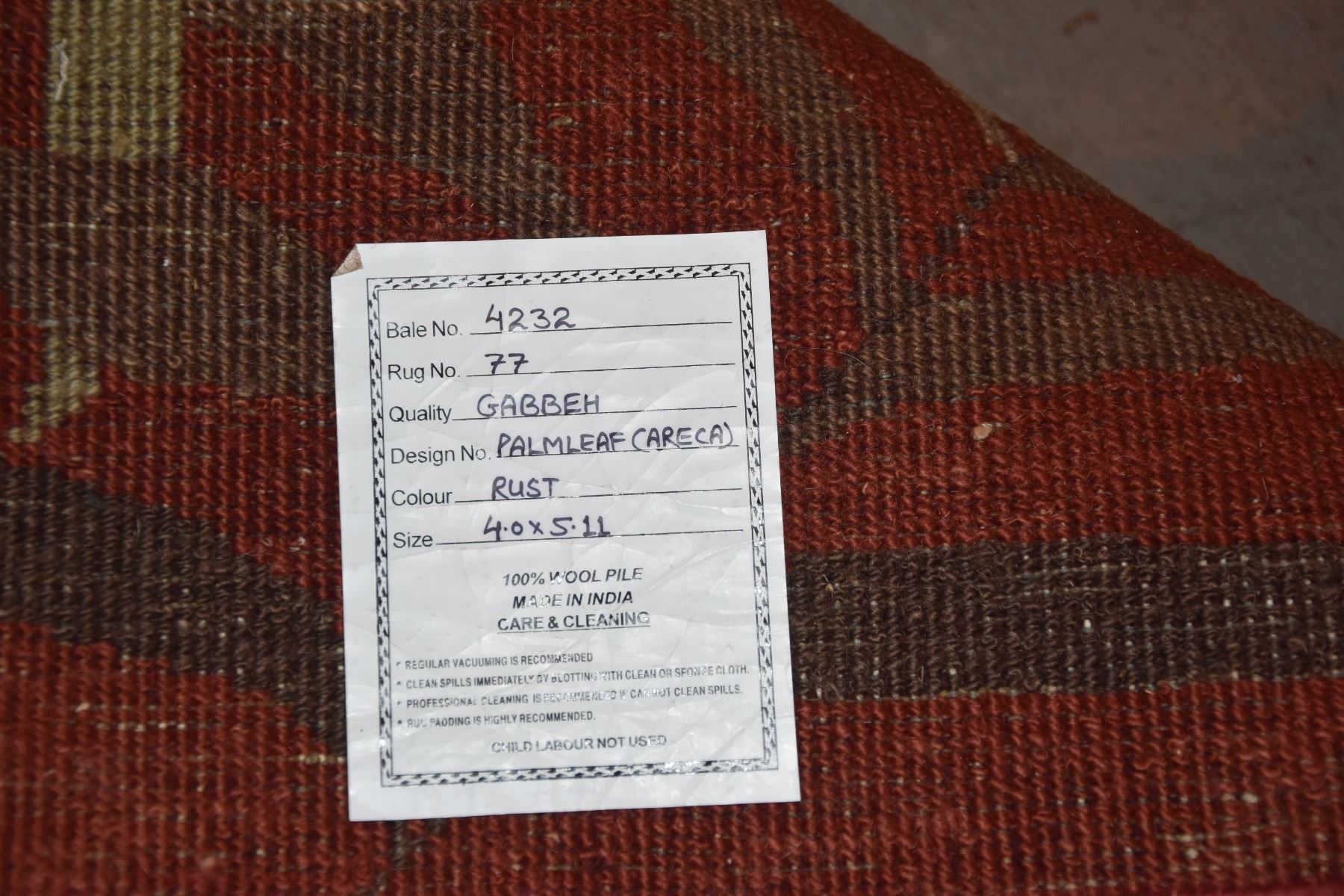 GABBEH WOOL RUG, PALM LEAF DESIGN, RUST COLOR (48" X 71")