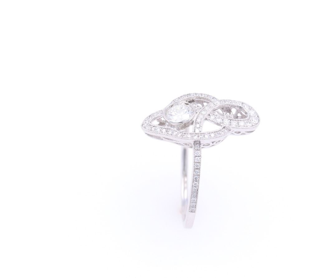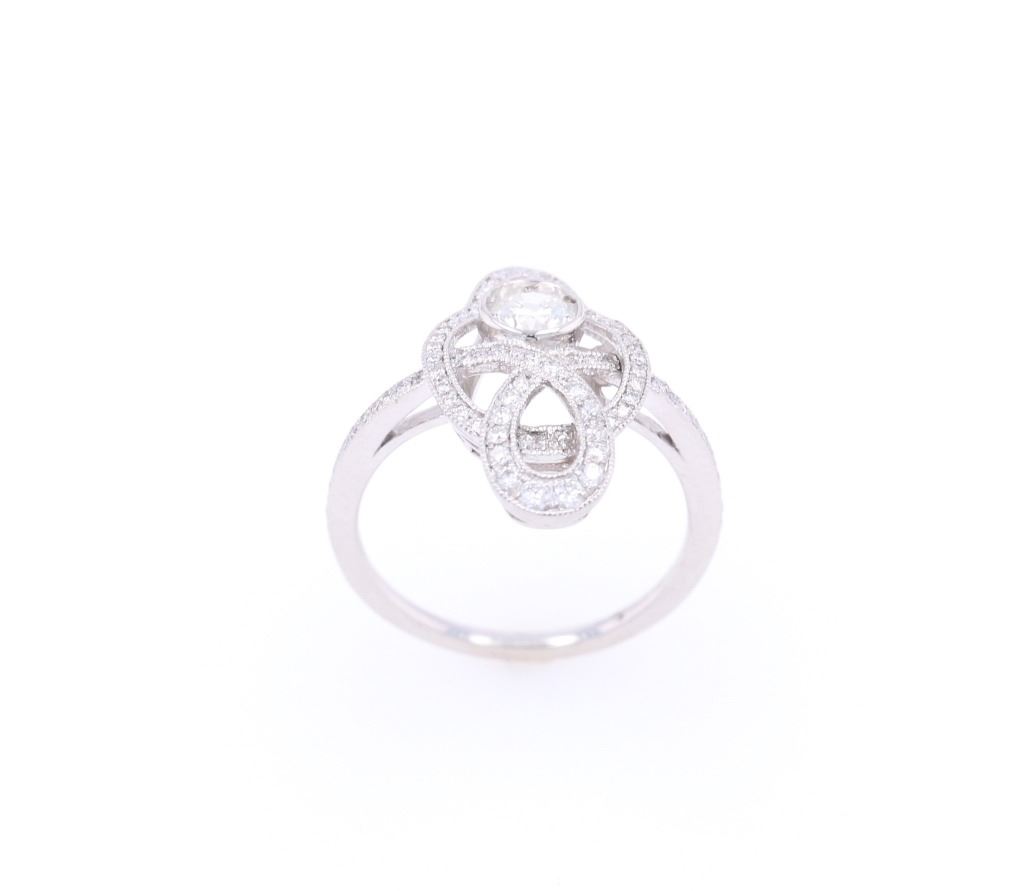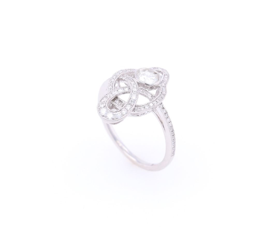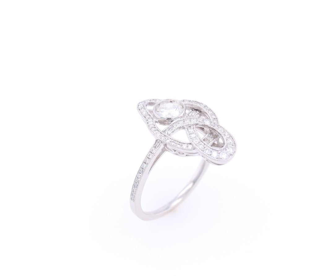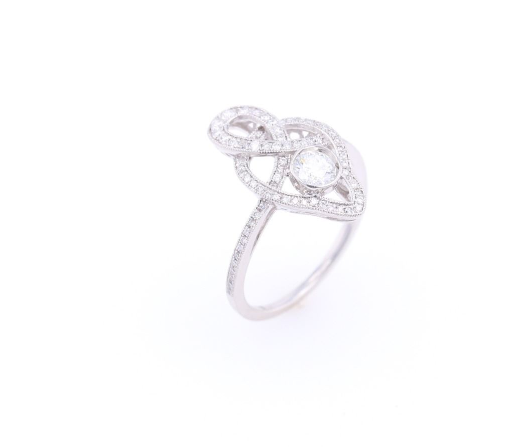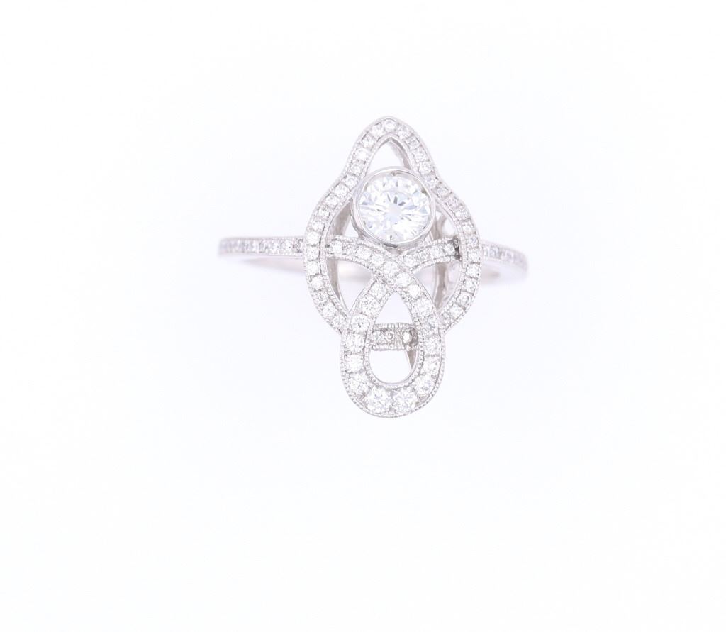 Featured in this lot is this beautifully crafted platinum and diamond ring with GAL paperwork. This wonderfully and professionally crafted ring shows a platinum construction with stamped hallmark reading, "Orianno". The larger, natural round brilliant cut diamond set in the top center of the ring measures 4.44 x 4.52 x 2.82mm, shows a color of I, a clarity rating of I1 and a carat total weight of 0.31. Accenting the ring are eighty-four natural, round brilliant cut diamonds with a color rating of G - H, a clarity rating of VS - SI and a carat total weight of 0.28. The piece comes complete with GAL(Gemological Appraisal Laboratory of America, Inc., a GIA certified lab GAL Appraisal Number#: GAL202220891) report and appraisal confirming the above info and giving a total value of $4,560.00. The ring size is US 6 and weighs 4.5 grams. RN033258.