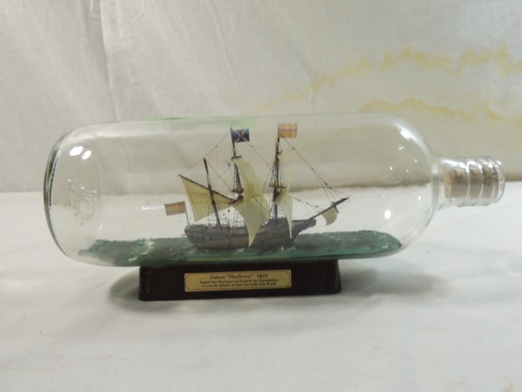 ENGLISH MERCHANTVESSEL PURCHASED BY THE PILGRIMFATHERS TO CROSS THE ATLANTIC ON THEIR WAY TO THE NEW WORLD. MODEL SHIP IN BOAT. GALEON MAYFLOWER MODEL SHIP IN BOAT COLLECTIBLE AS SHOWN SEE PHOTO FOR MORE DETAILS.