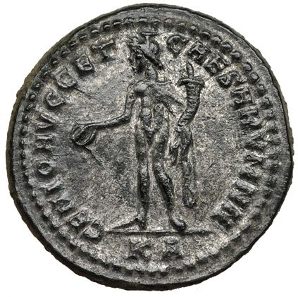 GALERIO MAXIMIANO. Follis. Cyzicus, A (295-296). r/ Ley.: genio avgg. et caesarvm nn. RIC-9b. Plateado original. EBC. Escasa.