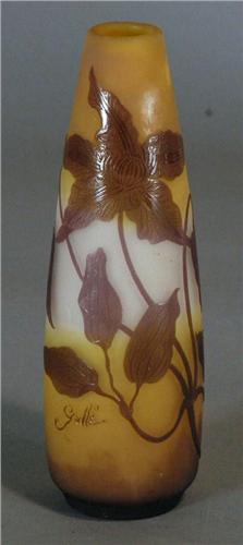 GALLE CAMEO GLASS VASE, 10 1/2" high, early 20th century, condition: a few minor nicks (fleabites) to base and edge of cameo, PACKING AND SHIPPING (excluding insurance) $30,