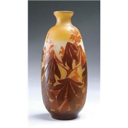 Lot 612 GALLE VASE Large with acid cut back layers depicting foliage in various stages of bloom. Signed “Galle” in cameo. SIZE: 14” t. CONDITION: Very good to excellent. 5-70776