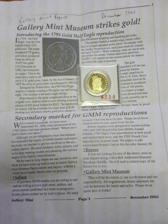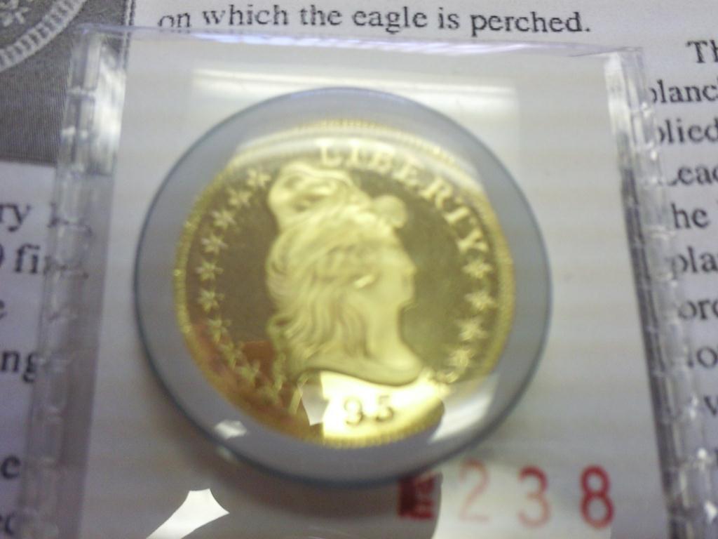 EXTREMELY NICE COIN FOR YOUR TYPE SET AS IT IS STRUCK TO ORIGINAL MINT SPECS FOR GOLD AND WIEGHT, LIMITED TO 200 PIECES, 22K 8.75 GRAMS OF GOLD