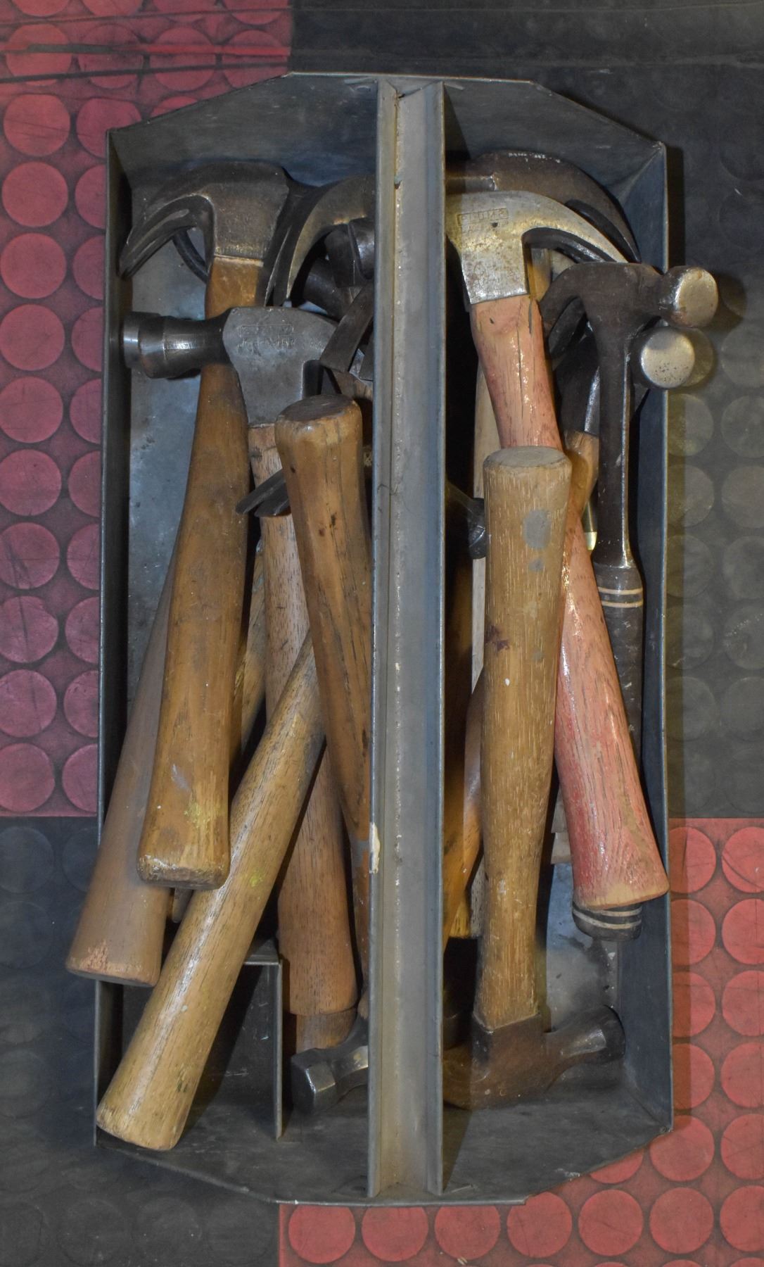 GALVANIZED TOOLBOX FULL WITH HAMMERS