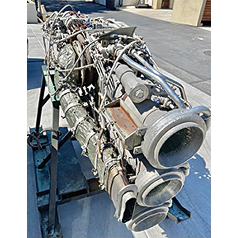 Massive Bell Aircraft XLR-67-BA-1 liquid propellant rocket engine from the late 1950s, mounted on a 56‰Û x 40‰Û wheeled sled, designed for the GAM-63 RASCAL, which was the first nuclear-tipped supersonic air-to-surface missile. The XLR-67-BA-1 rocket engine provided 10,440 pounds-force (46.4 kN) of thrust using three vertical in-line thrust chambers. All three thrust chambers of the XLR-67 were operated during the missile's boost phase which could last up to two minutes. At the conclusion of the boost phase the upper and lower chambers of the XLR-67 were shut down and thrust was sustained by the center chamber alone. This particular unit was featured in the music video for 'One Way Ticket to the Moon' by Dave Stewart (of Eurythmics fame).