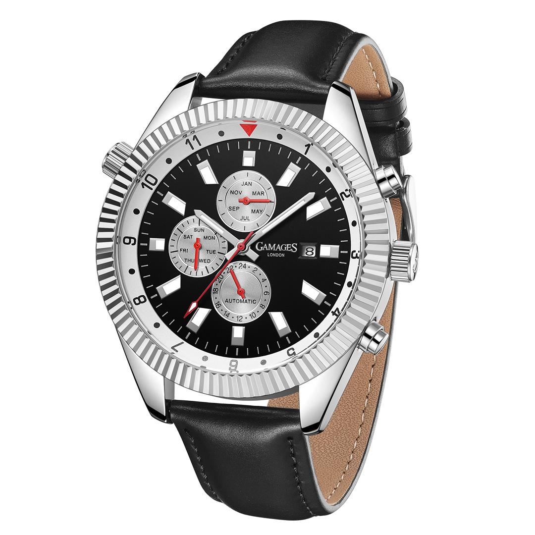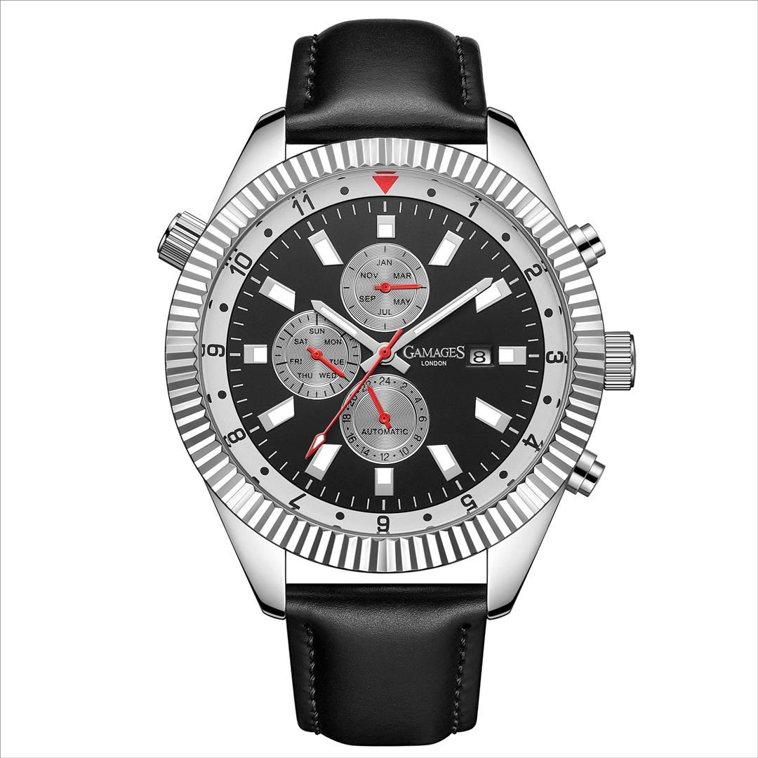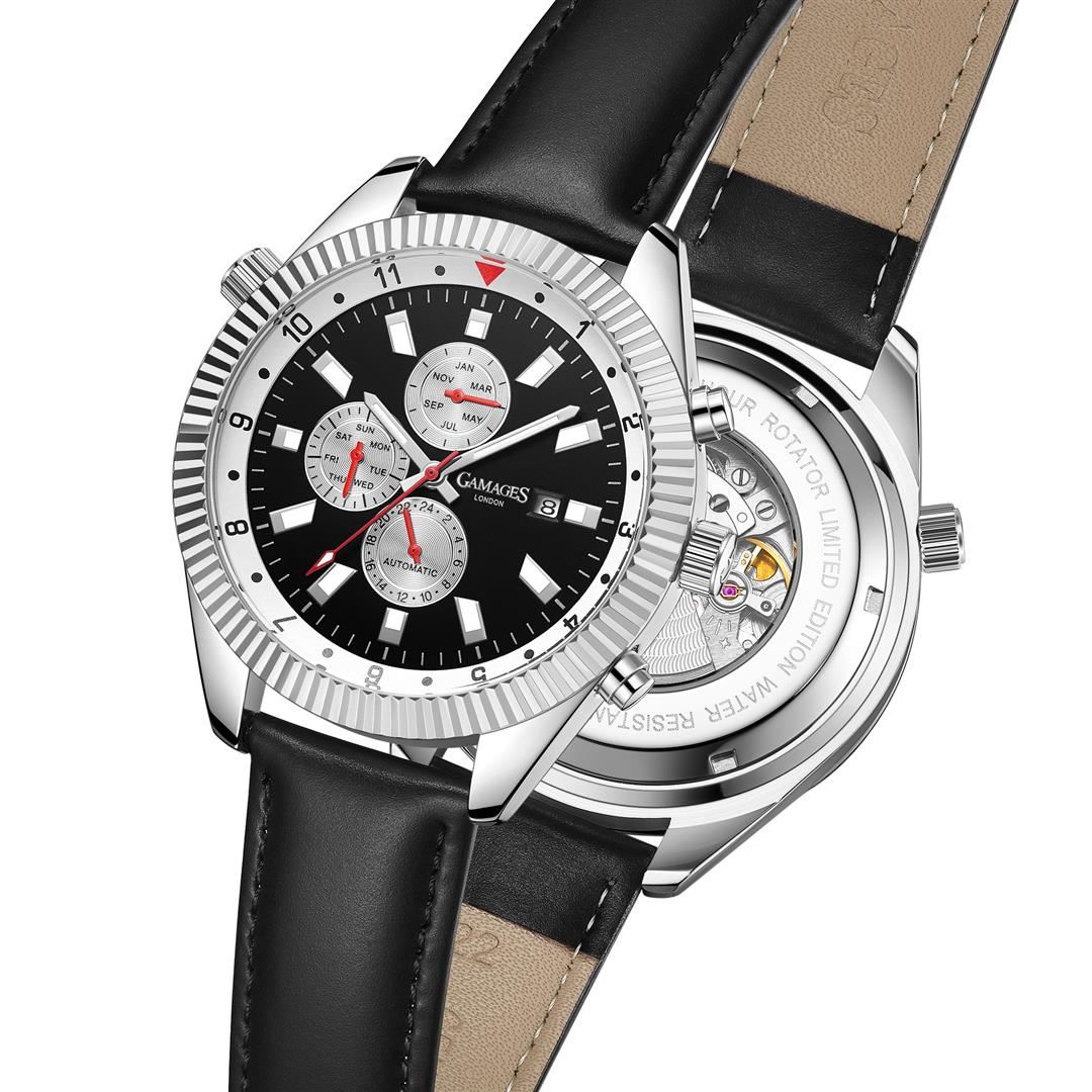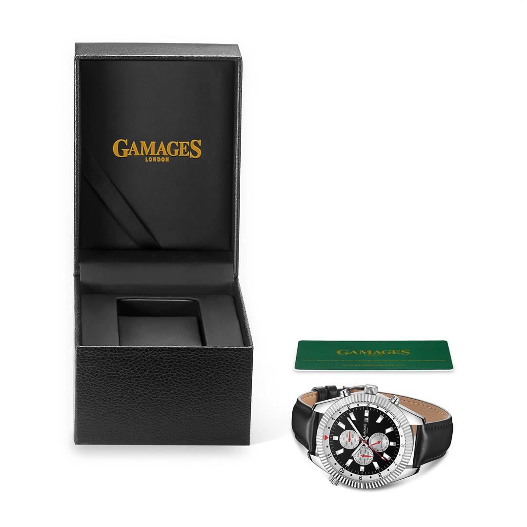 Whether gold, coal, or iron ore, mining will forever have a place in British history. The Gamages Hour Rotator men's watch reminds us of such a tradition and promotes the affluence you can only find when you're willing to explore deep under the Earth's surface. It consists of a 163 part 20 jewel hand assembled movement that is inspired by the intricate solutions required for every venture beneath. Bordered by an inner-rotating bezel, the Day, Date, Month and 24-Hour functions conjure images of the neverending grit that makes the man, while the blade-like hands push scenes of determination to the forefront of your mind. These parts are contained within the solid stainless steel caseback with the Gamages logo engraved. The first layer hand waxed soot black leather strap, complete with Gamages logo buckle, leaves a final lasting impression. With the history of mining, it is understood that the work never stopped, and while the nation doesn't rely on it as it once did, this watch reminds us of the consistent work that went into building Britain. Model Specifications - Hand Assembled 163 Piece 20 Jewel Automatic Movement - Stainless Steel Case Back With Gamages Etched Logo - Day, Date & Month Functions - 24 Hour Timer - Luminous Hands - Inner Rotating Hour Bezel - Scratch Resistant Mineral Glass - Water Resistant 3ATM - Hand Waxed Tobacco Brown Leather Strap - Shock Resistant - Antimagnetic - Nickel Free & Hypoallergenic - IP Plating Watch Dimensions - Case 48mm - Thickness 14mm - Strap Width 22mm - Strap Length 220mm - Lug Width 22mm - Weight 94g