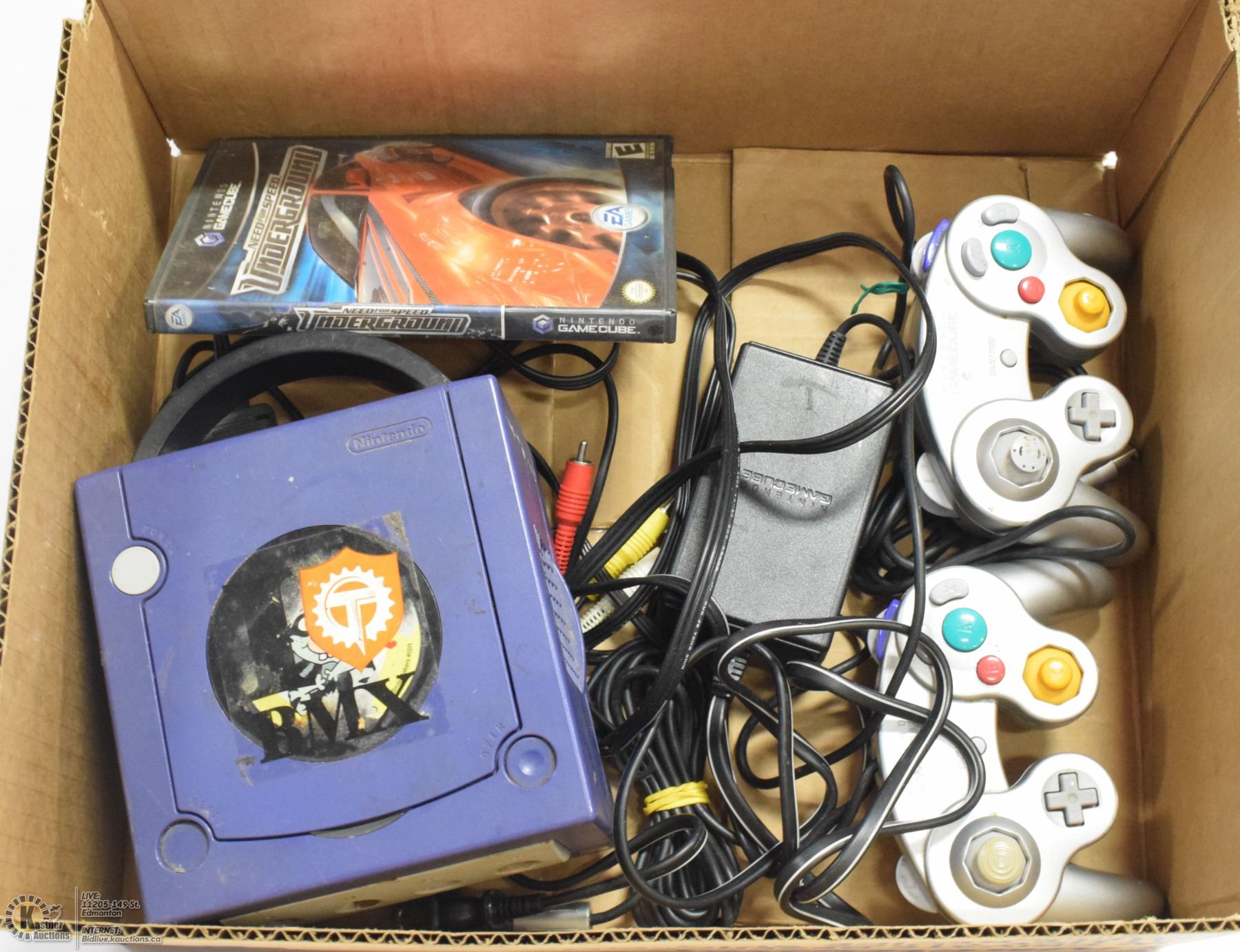 GAME CUBE WITH 2 CONTROLLERS, POWER & AUDIO CARDS