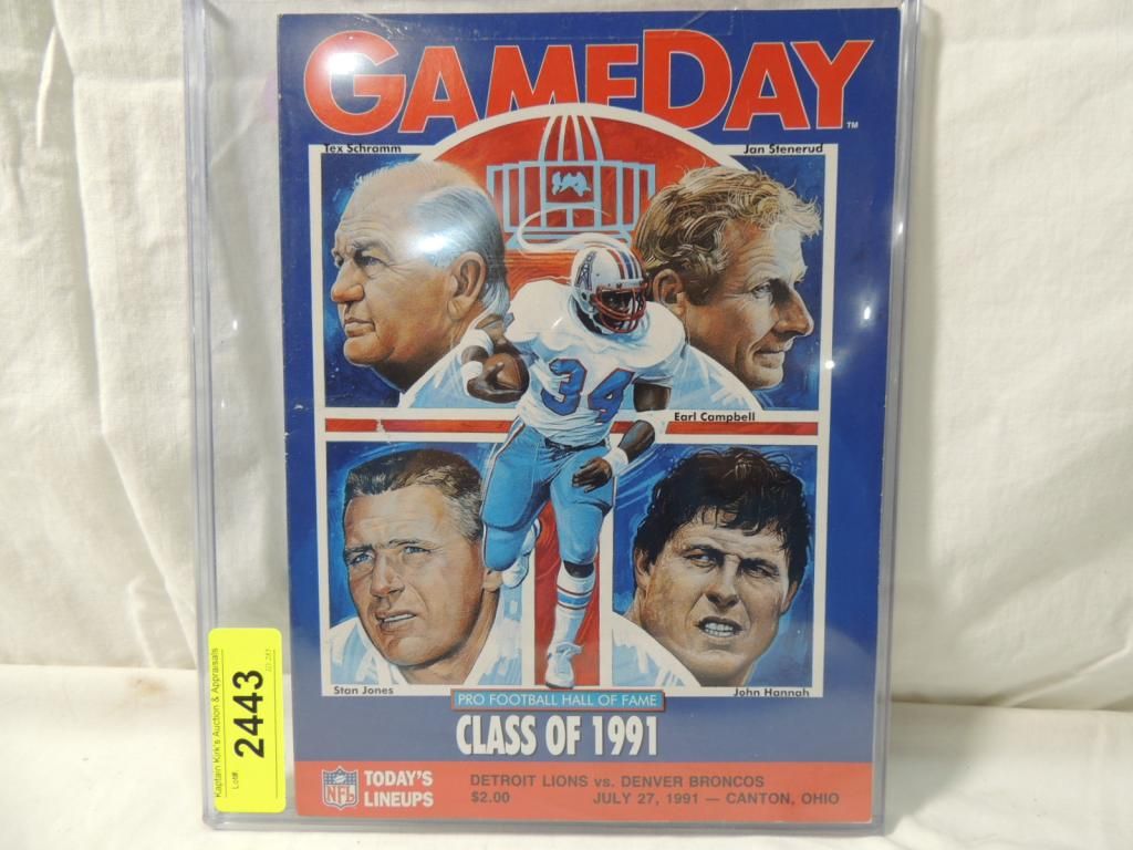 CLASS OF 1991 DETROIT LIONS VS DENVER BRONCOS PRO FOOTBALL HALL OF FAME. JULY 27, 1991 CANTON OHIO. AS SHOWN. SEE PHOTO FOR MORE DETAILS.