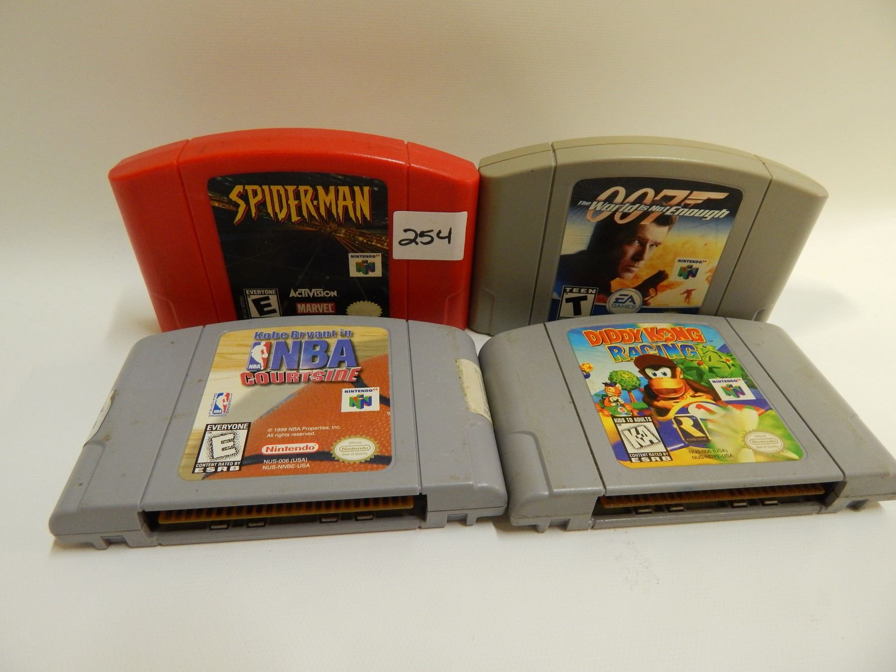 4 NINTENDO 64 GAMES/DIDDY KONG RACING/SPIDERMAN/KOBE BRYANT NBA COURTSIDE/OO7THE WORLD IS NOT ENOUGH
