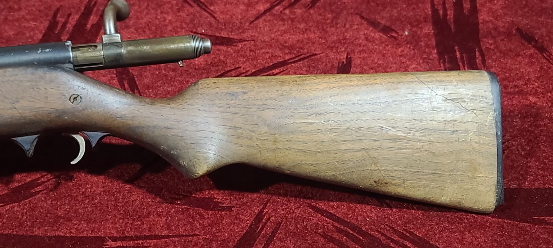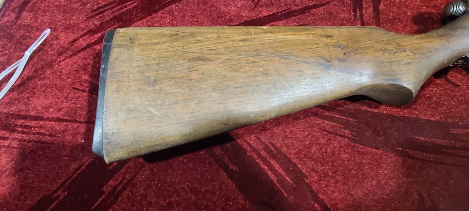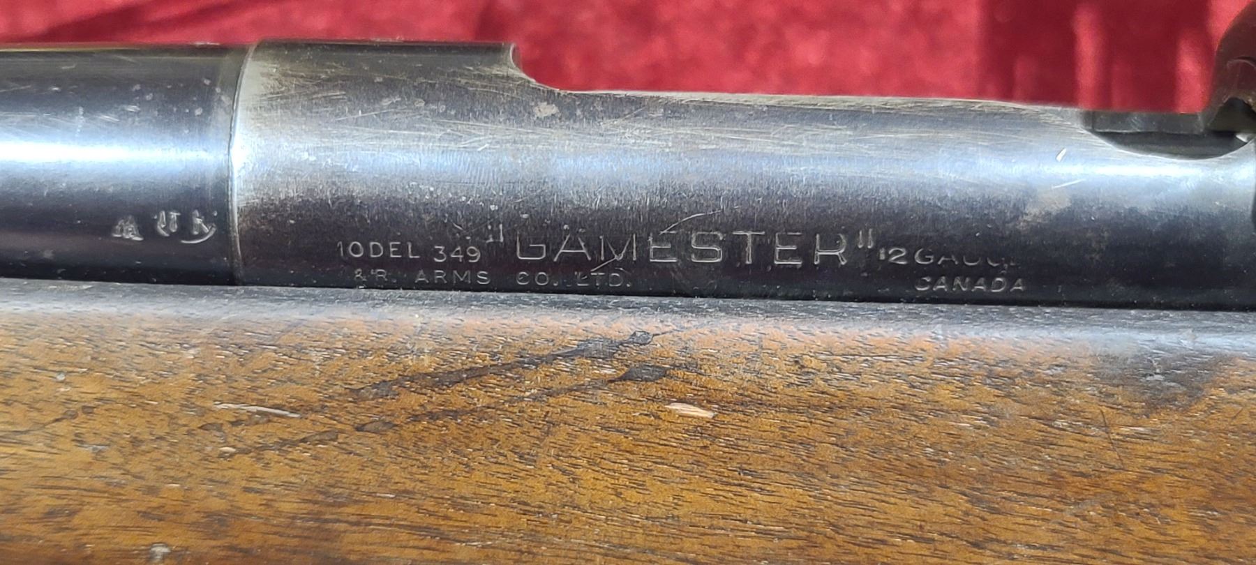 GAMESTER MODEL 349 12GA BOLT ACTION - STOCK APPEARS CRACKED HOWEVER IT IS JUST SCRATCHED - SOCK BUTT PLATE IS CHIPPED - TRIGGER GAURD IS BROKEN/MISSING - HAS ADJUSTABLE CHOKE CYL/MOD/FULL - BOLT ACTION WORKS - OLD FIREARM - FIRE AT OWN RISK - STOCK AND BARREL ARE A LITTLE LOSE