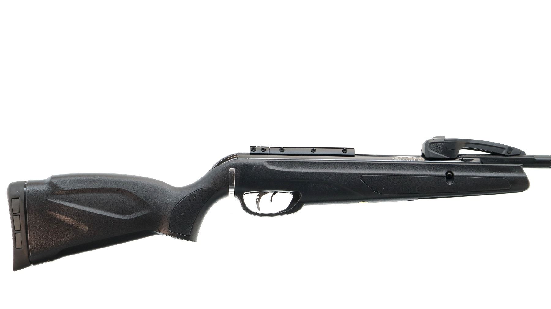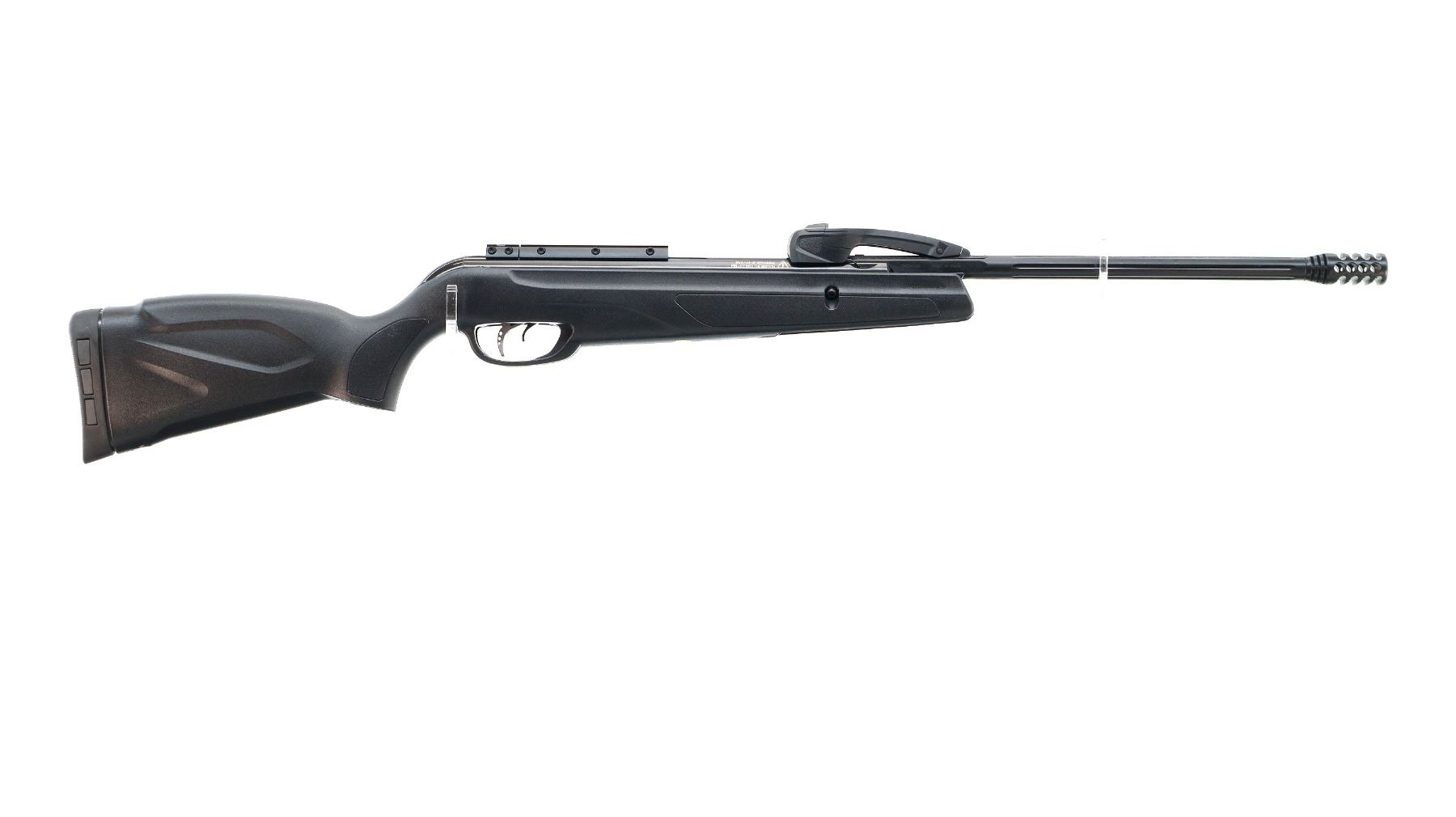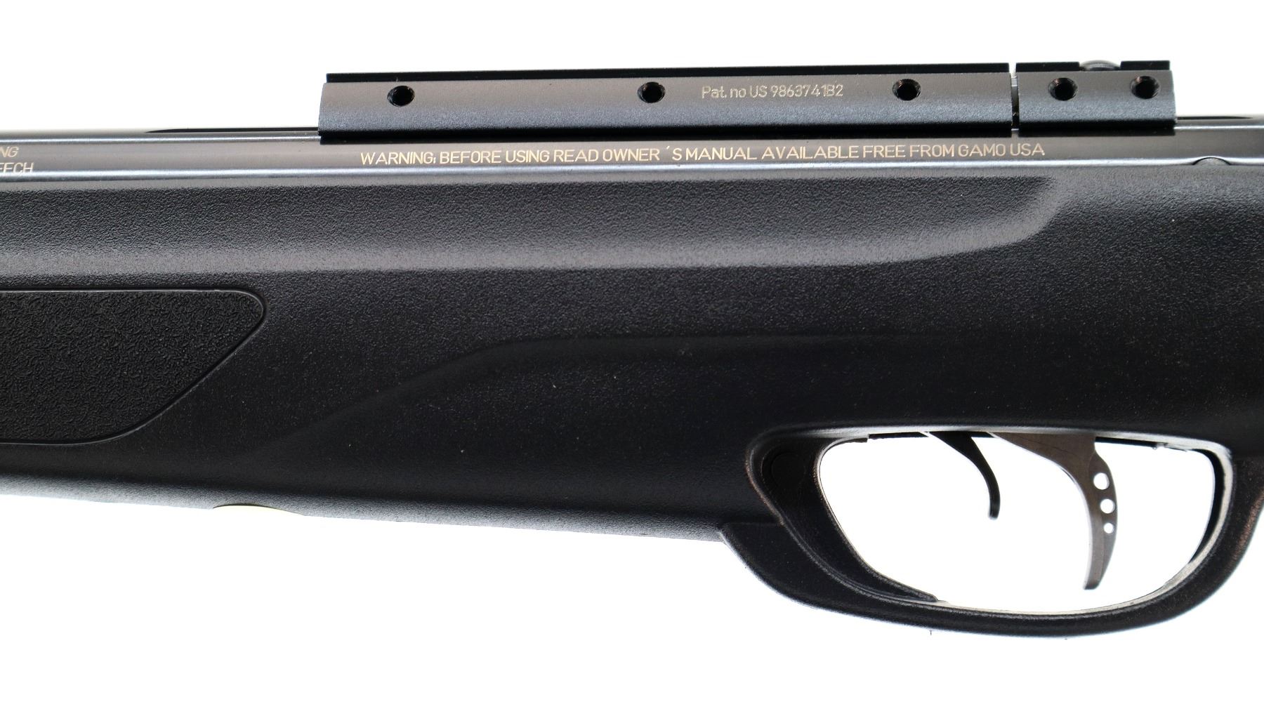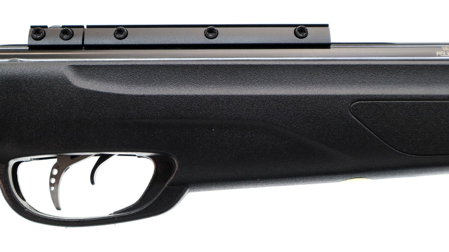 Main Description: No sights, black polymer shrouded barrel, blued receiver, grooved with one piece rail installed. One piece black polymer stock, textured forearm and pistol grip panels, raised comb, black rubber recoil pad, grip cap.