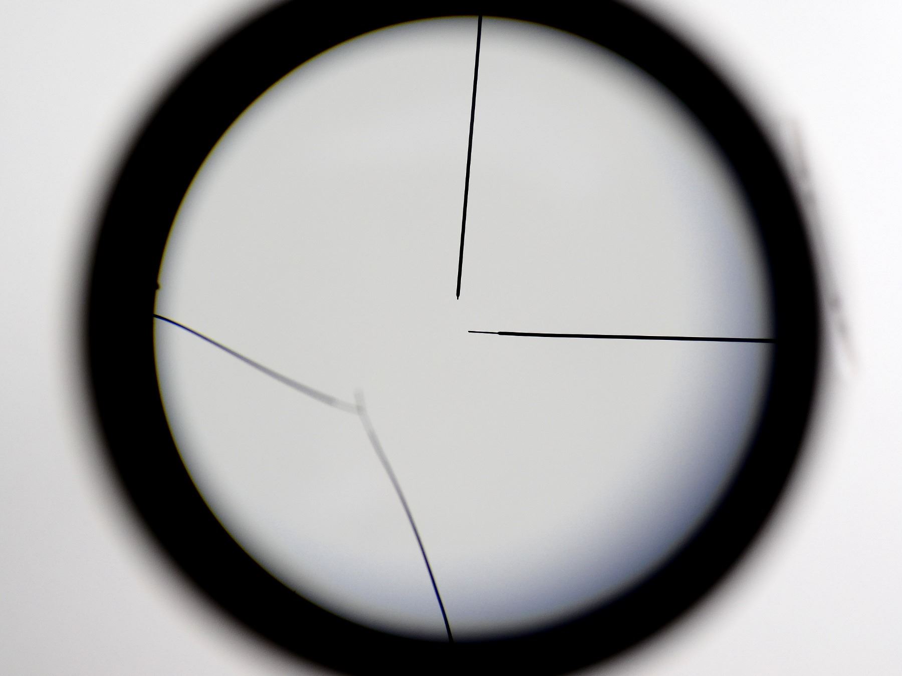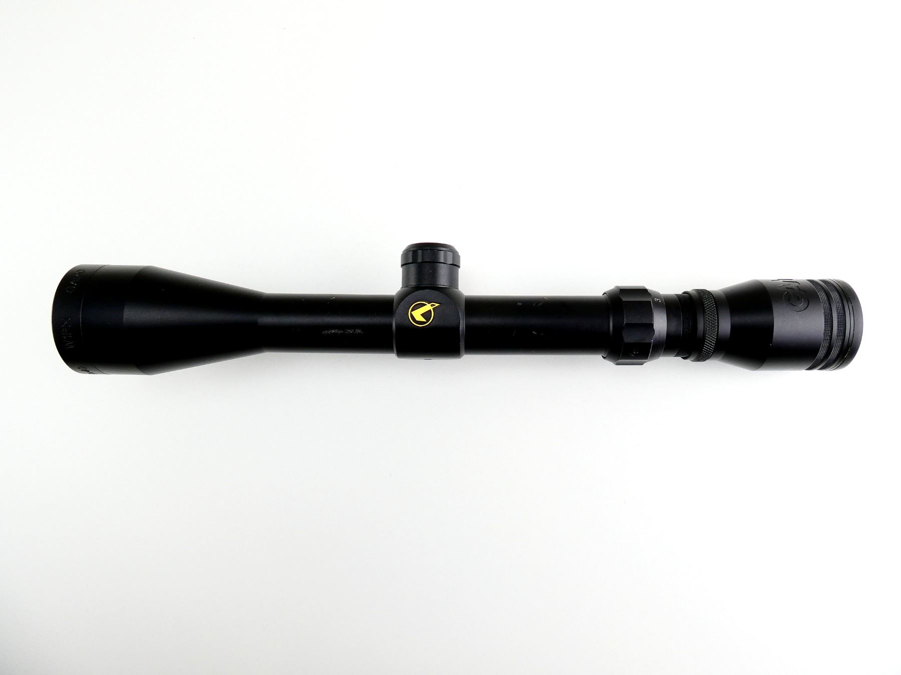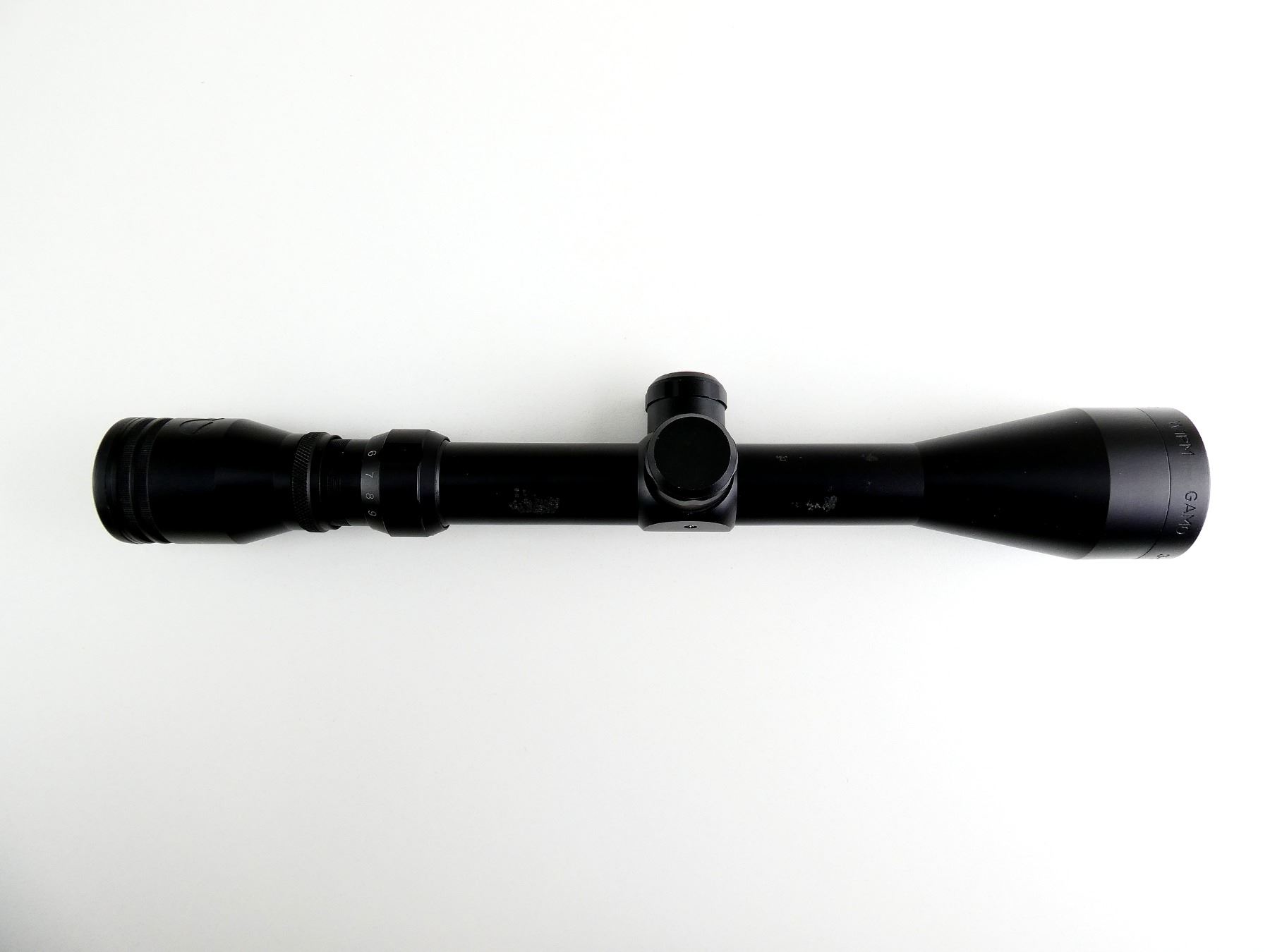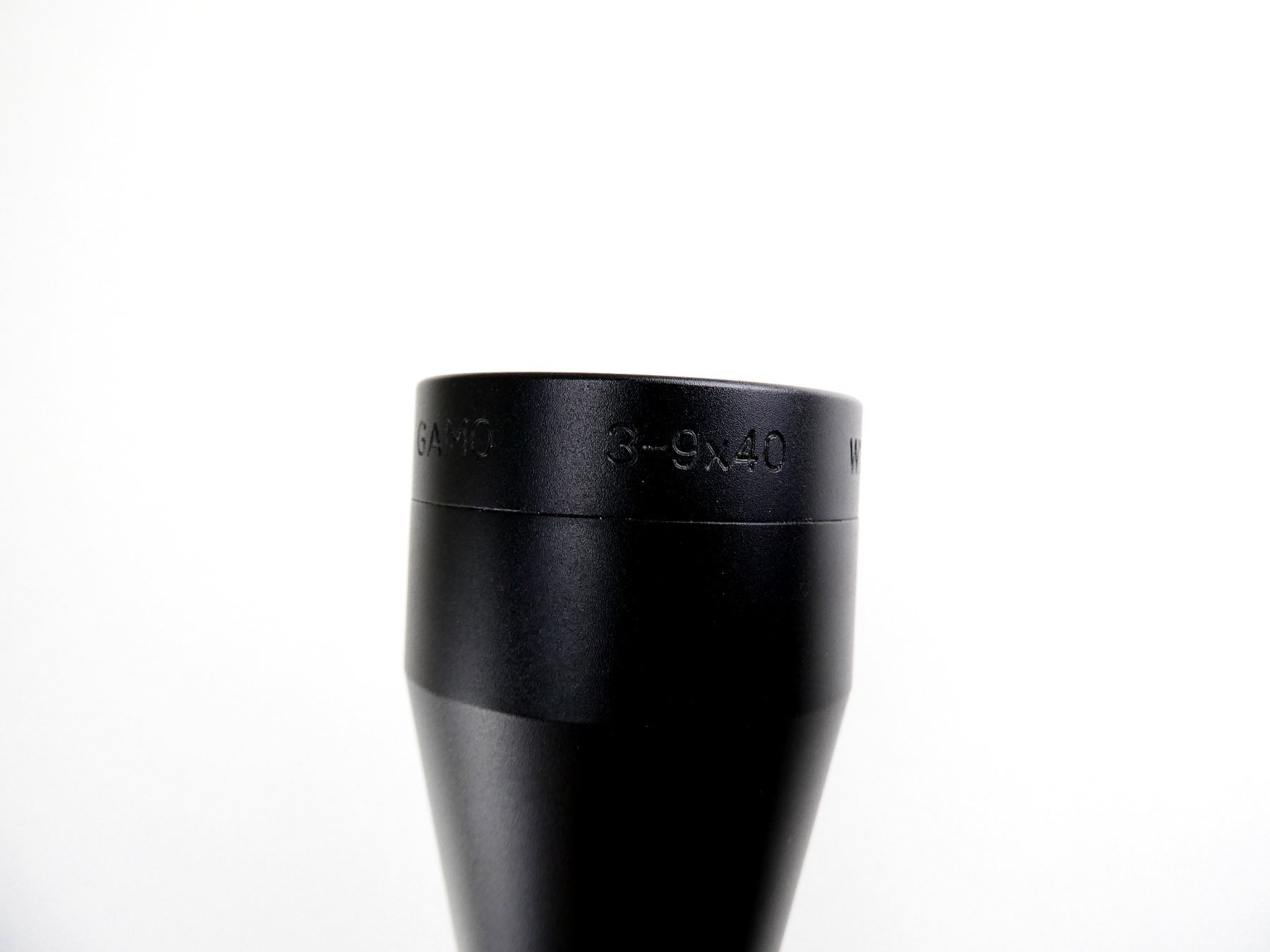 (1) CLOUDY OPTICS, BROKEN DUPLEX CROSSHAIR RETICLE, 1" TUBE DIAMETER, WORKING MAGNIFICATION RING, WINDAGE & ELEVATION KNOBS TURN, MARKED: "GAMO" "09-18A", "3-9X40", "W1PM", ETC., SHOWS WEAR & TEAR / USE MARKS. SEE PHOTOS.