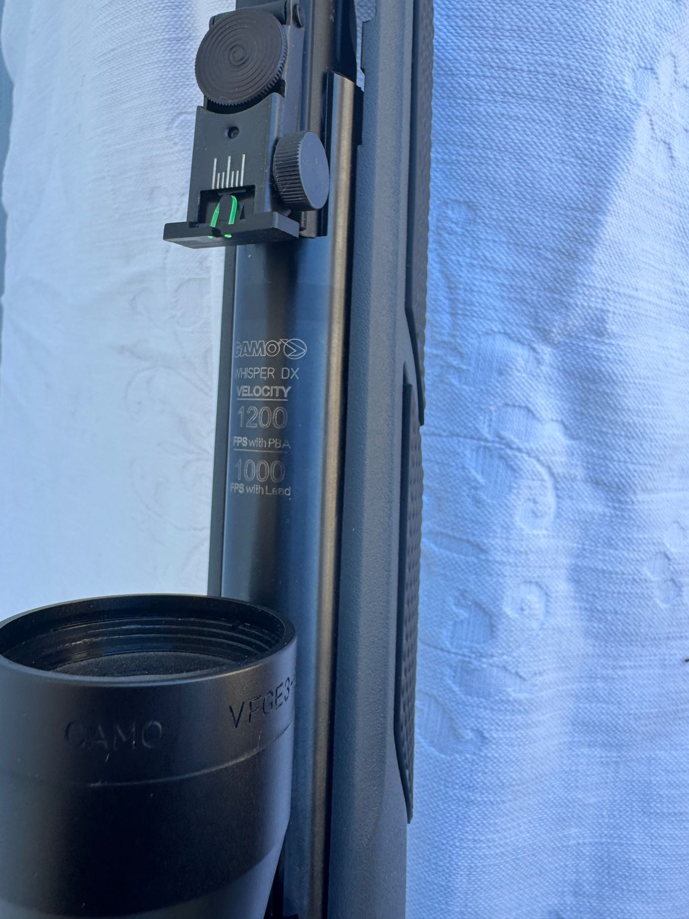GAMO WHISPER DX PELLET GUN; BREAK; MUZZLE VELOCITY 1200 FT/S PBA OR 1000 WITH LEAD
