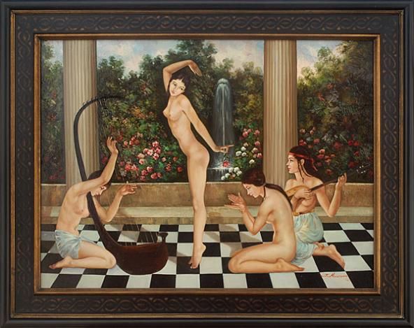 "GARDEN DANCE" - ORIGINAL HAND PAINTED OIL ON CANVAS - PROFFESSIONALLY FRAMED - IMAGE 36x 48" - FRAMED 48x 60"