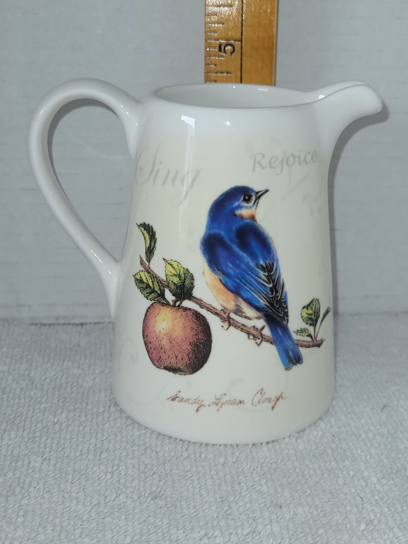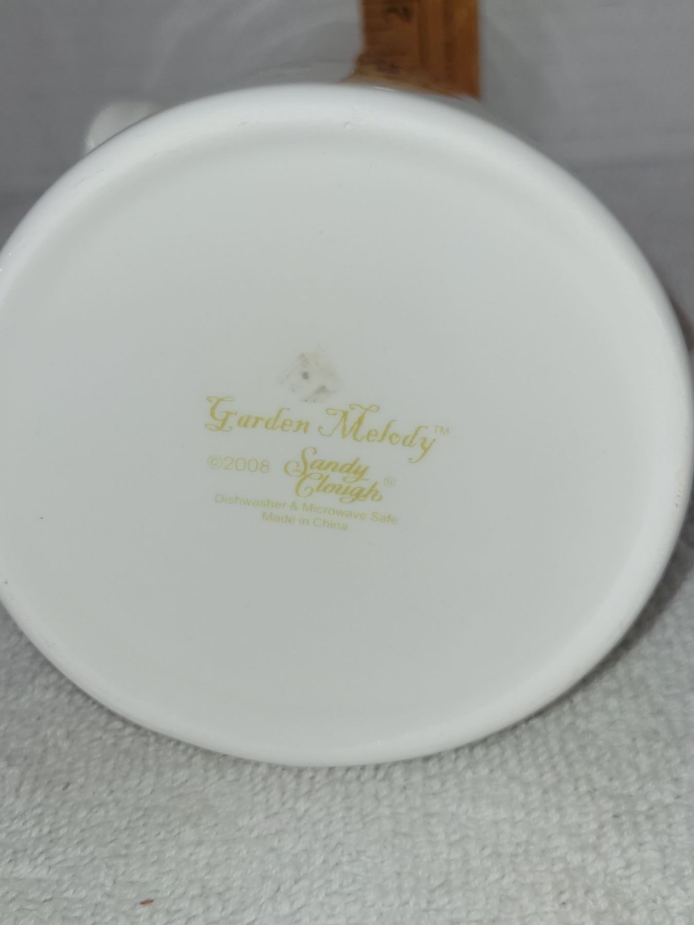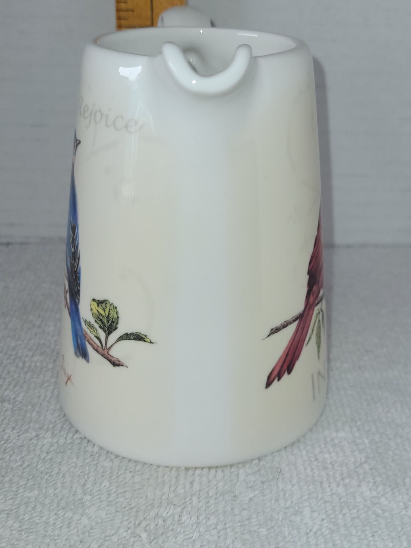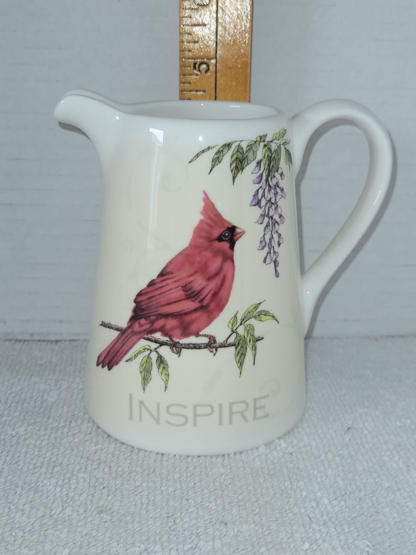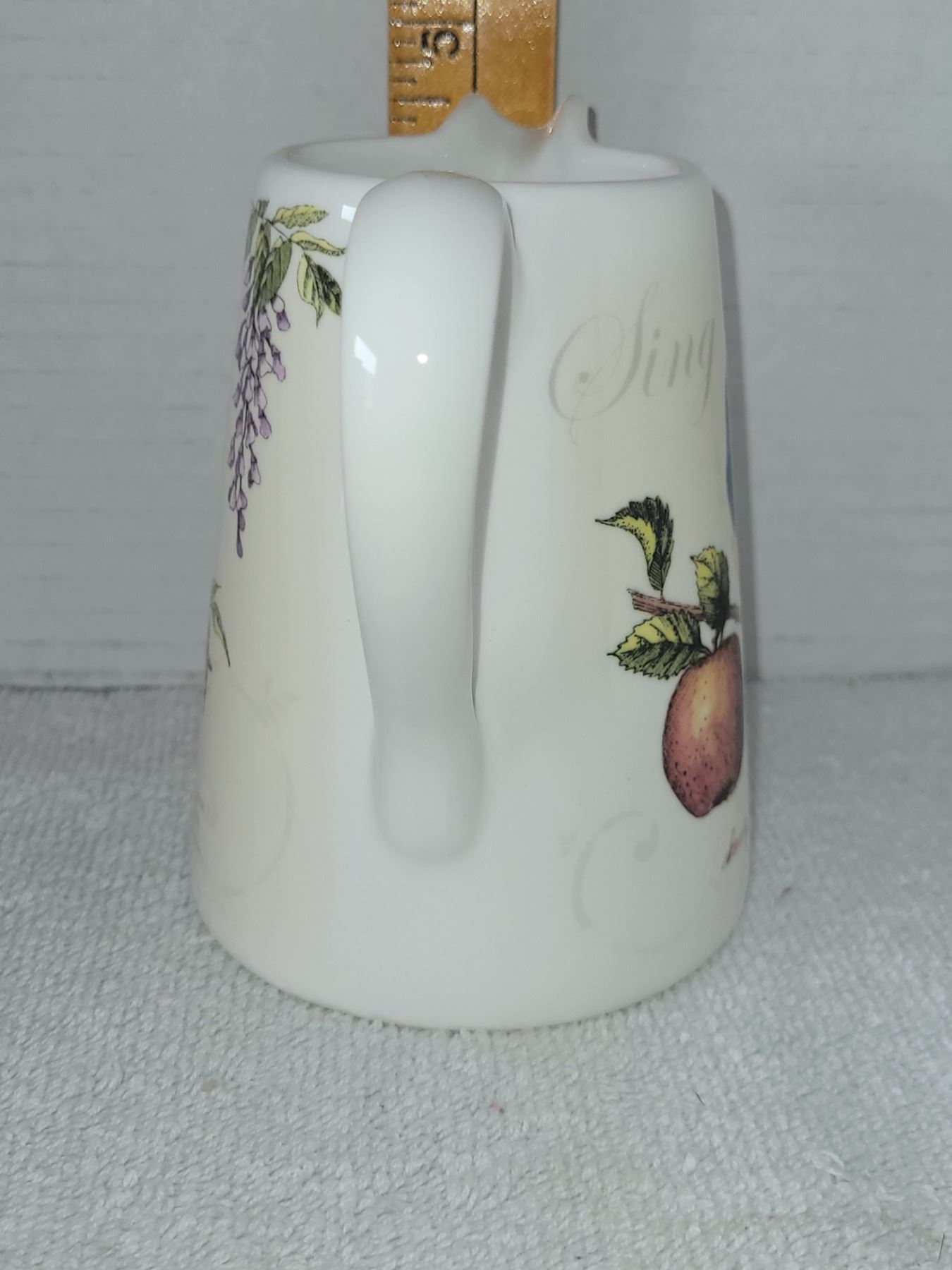 GARDEN MELODY SARAH CLOUGH TALL CREAMER. INSPIRE. SING. REJOICE. MEASURES 4.5" WIDE 5' TALL