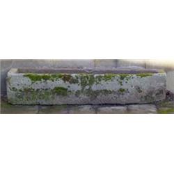 GARDEN ORNAMENTS - A large gritstone trough, of deep rectangular form with one chamfered angle, 85in x 26in, 17in deep, 18th - 19th century