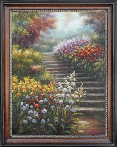 "GARDEN STAIRS" - ORIGINAL HAND PAINTED OIL ON CANVAS - PROFESSIONALLY FRAMED - IMAGE 36x 48" - FRAMED 45x 57"