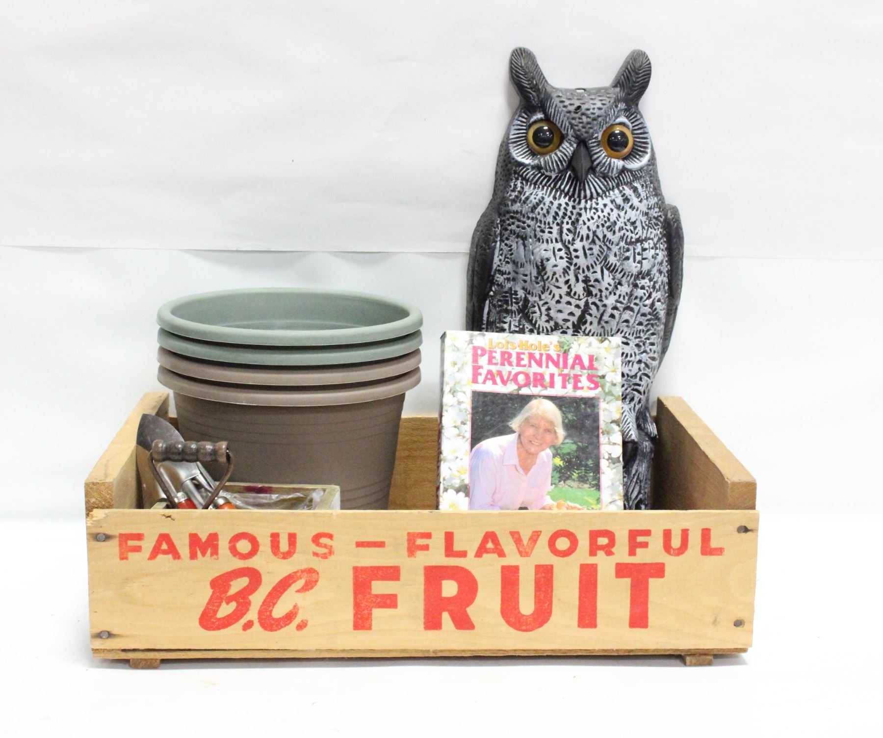 GARDENING VEGETABLE & HERB SEEDS, BOOK, TOOLS, OWL