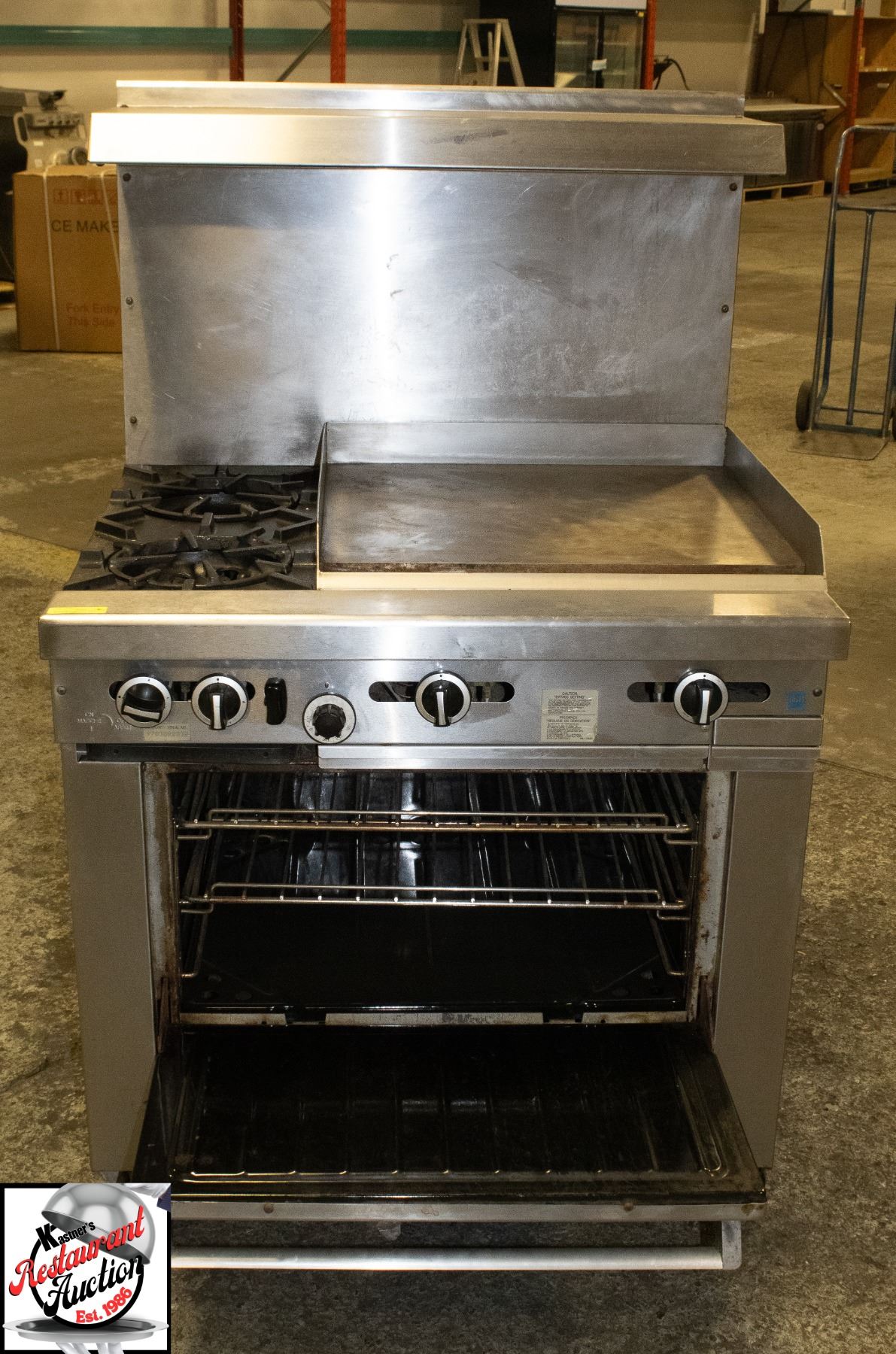 TWO POT BURNERS ON THE LEFT HAND SIDE, 24" GRIDDLE ON THE RIGHT HAND SIDE W/ OVEN, MODEL # HI286-246, 36" X 33" X 60"